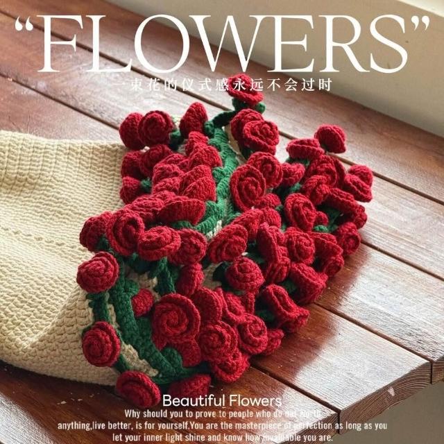 毛毯花束 diy 材料包玫瑰花毯鉤織毛線鉤花編織自製女友情人節禮物