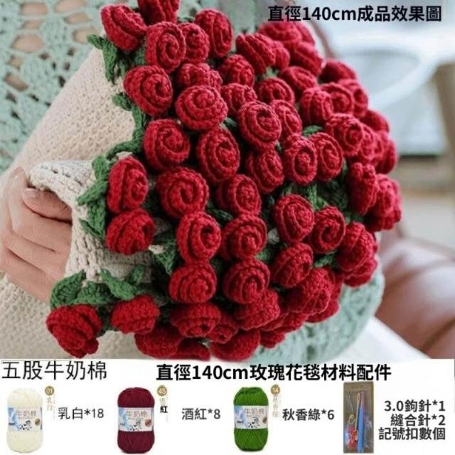 毛毯花束 diy 材料包玫瑰花毯鉤織毛線鉤花編織自製女友情人節禮物