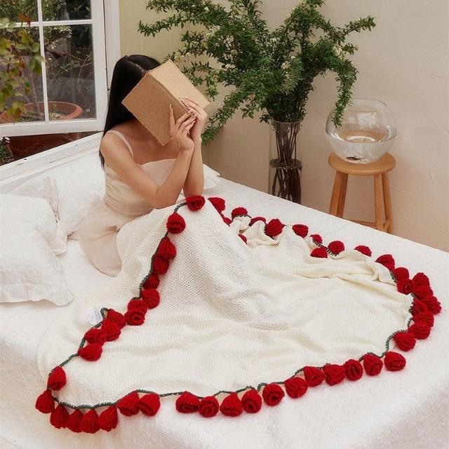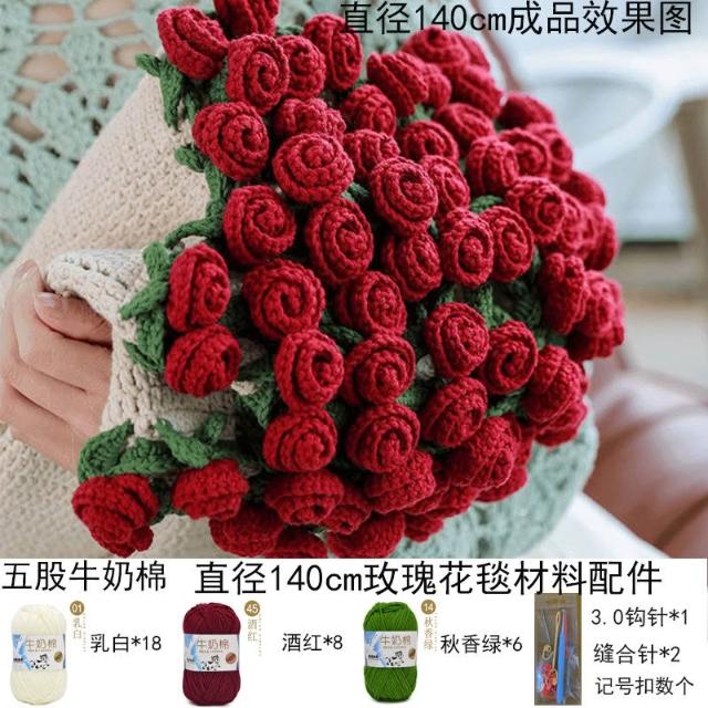 毛毯花束 diy 材料包玫瑰花毯鉤織毛線鉤花編織自製女友情人節禮物