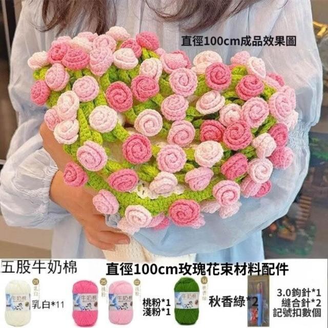毛毯花束 diy 材料包玫瑰花毯鉤織毛線鉤花編織自製女友情人節禮物