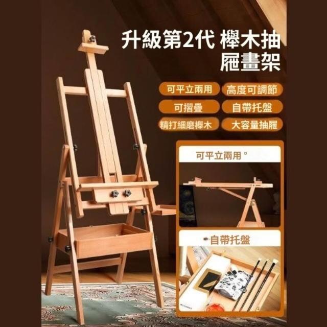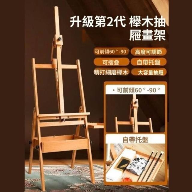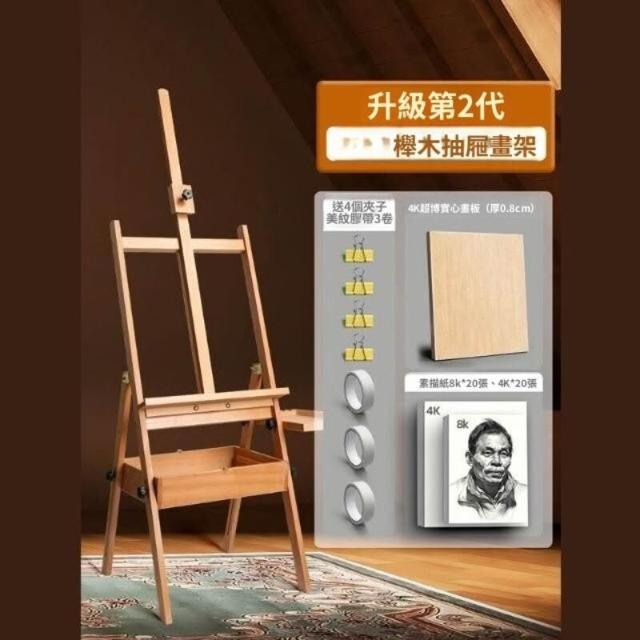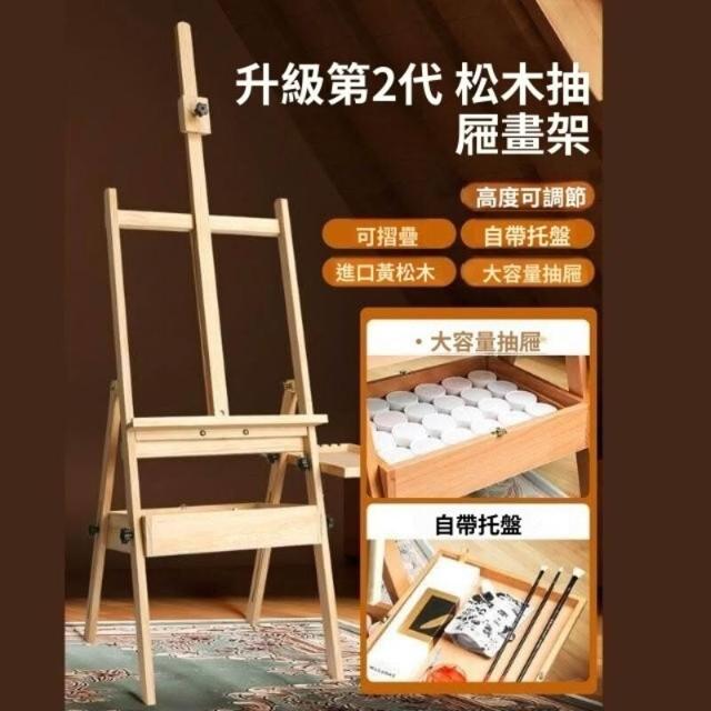 抽屜式畫架美術生專用畫板素描寫生畫畫支架式櫸木油畫架可摺疊