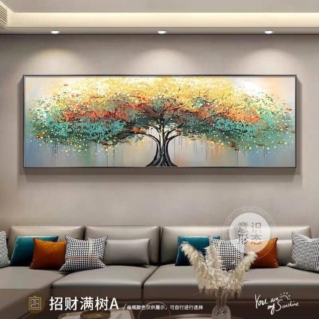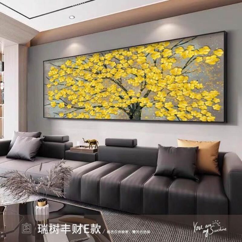 發財樹客廳裝飾畫抽象花卉沙發背景牆壁畫輕奢高級感臥室床頭掛畫