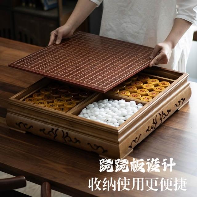 胡桃木瑪瑙玉石圍棋五子棋桌墩棋盤套裝桌棋墩二合一兩用中國象棋