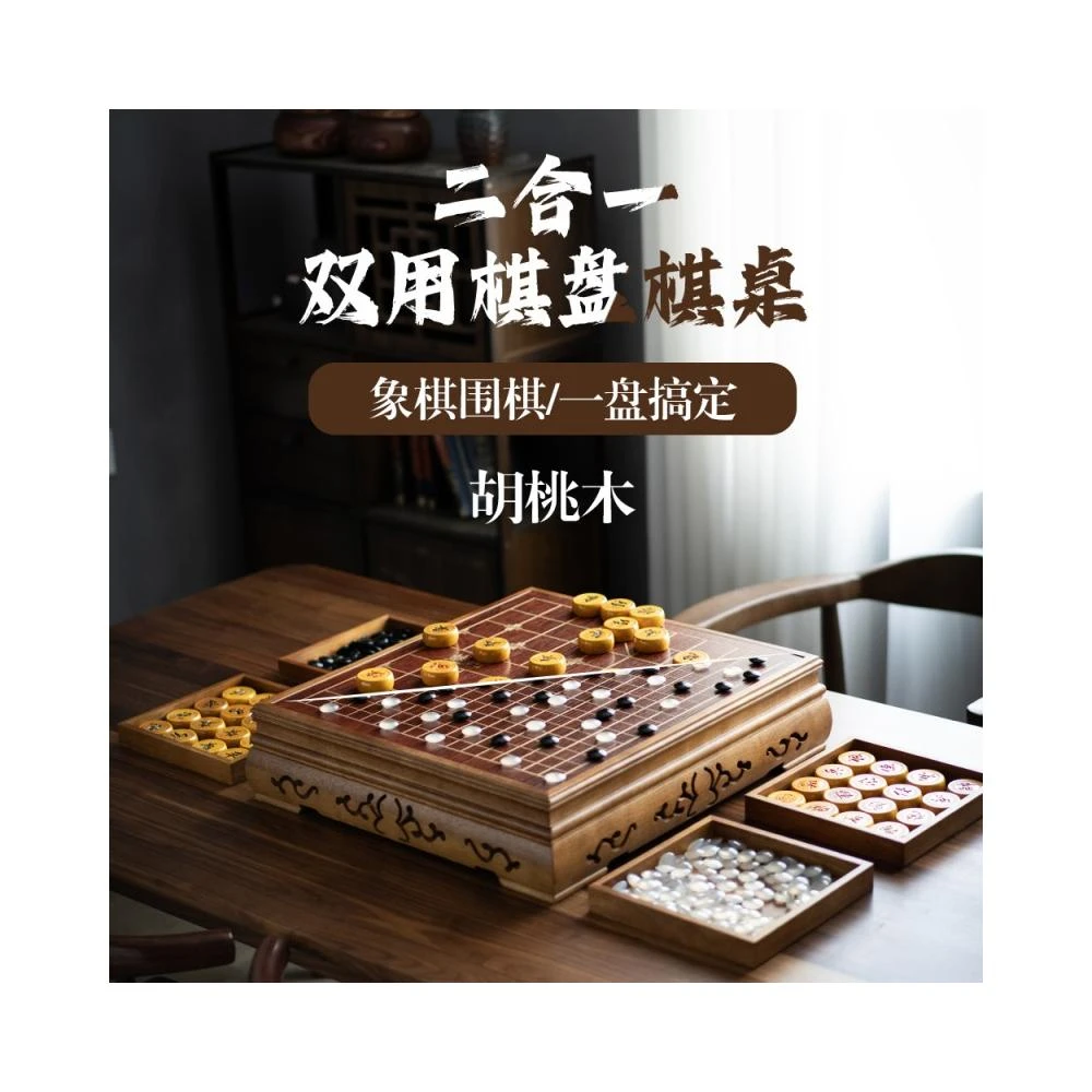 胡桃木瑪瑙玉石圍棋五子棋桌墩棋盤套裝桌棋墩二合一兩用中國象棋