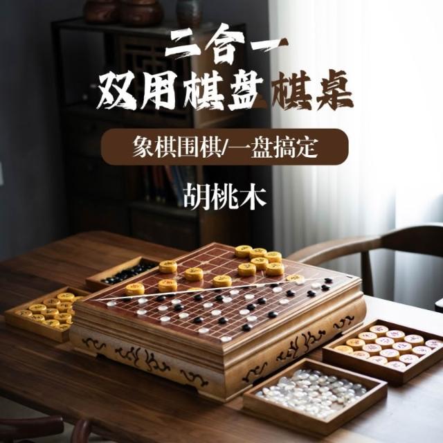 胡桃木瑪瑙玉石圍棋五子棋桌墩棋盤套裝桌棋墩二合一兩用中國象棋