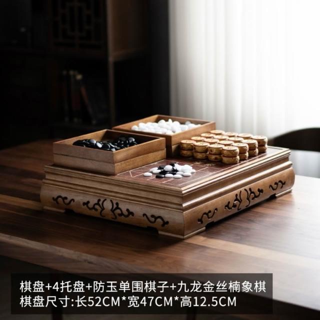 胡桃木瑪瑙玉石圍棋五子棋桌墩棋盤套裝桌棋墩二合一兩用中國象棋