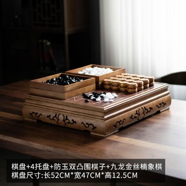 胡桃木瑪瑙玉石圍棋五子棋桌墩棋盤套裝桌棋墩二合一兩用中國象棋