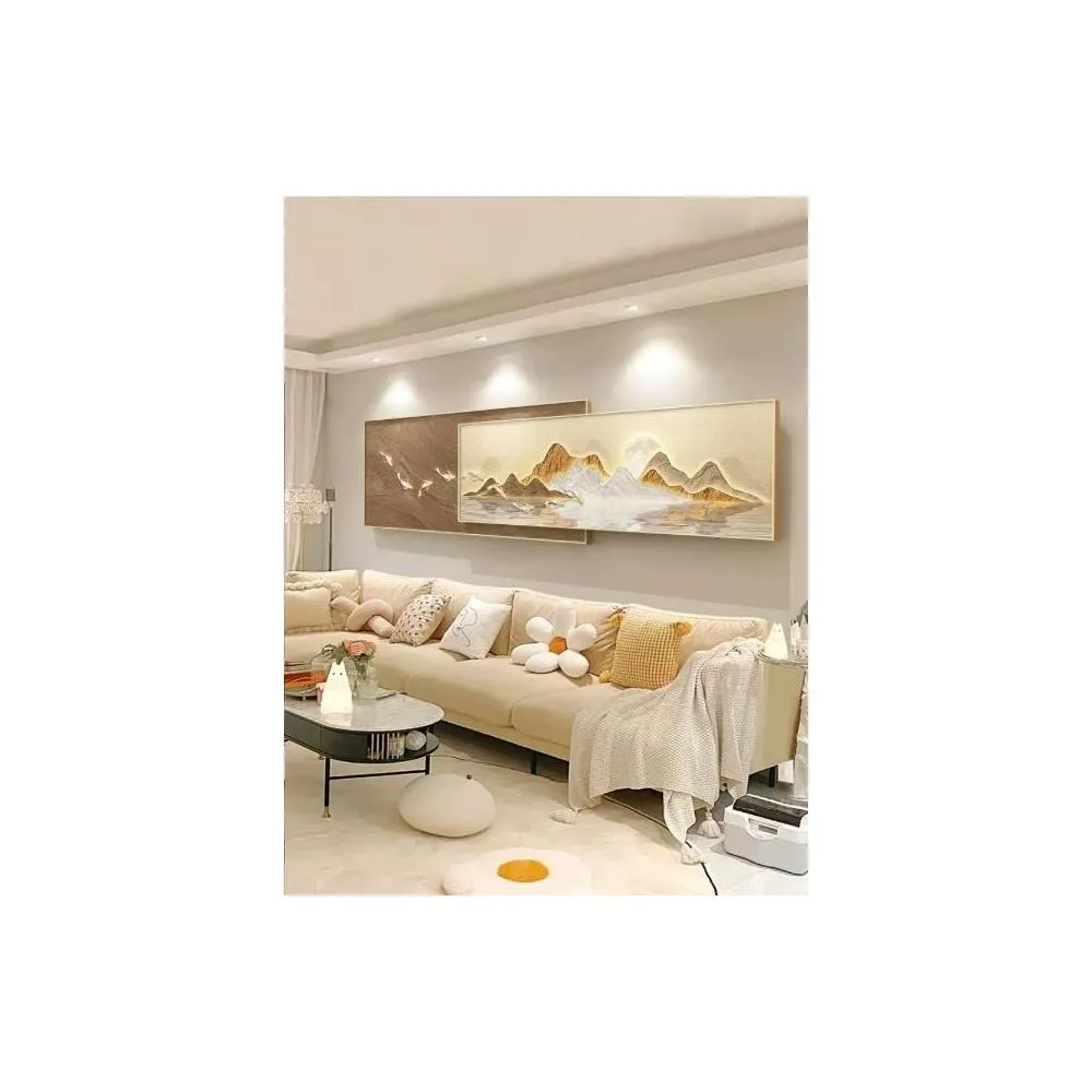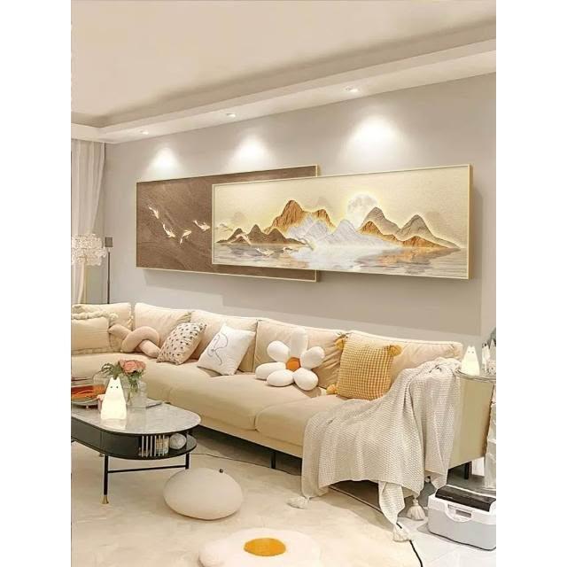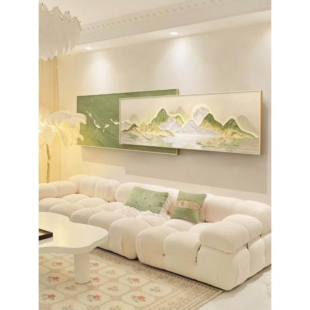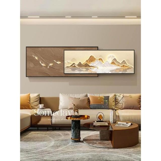 九魚圖客廳裝飾畫沙發背景牆掛畫2024新款輕奢高級感山水疊加壁畫