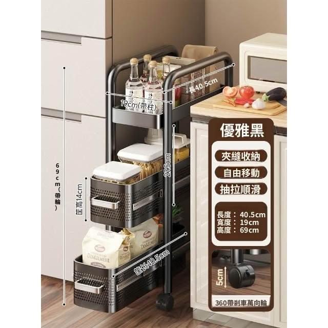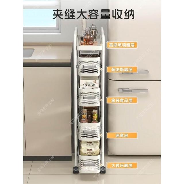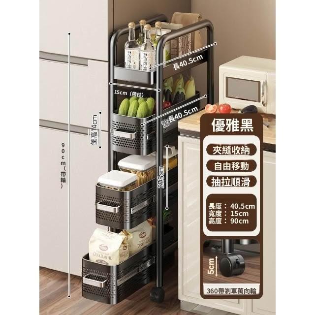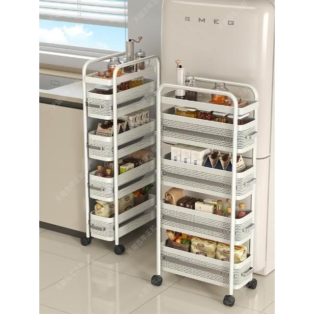 廚房夾縫置物架 落多層地冰箱側面抽拉小推車 極窄縫拉籃縫隙收納架
