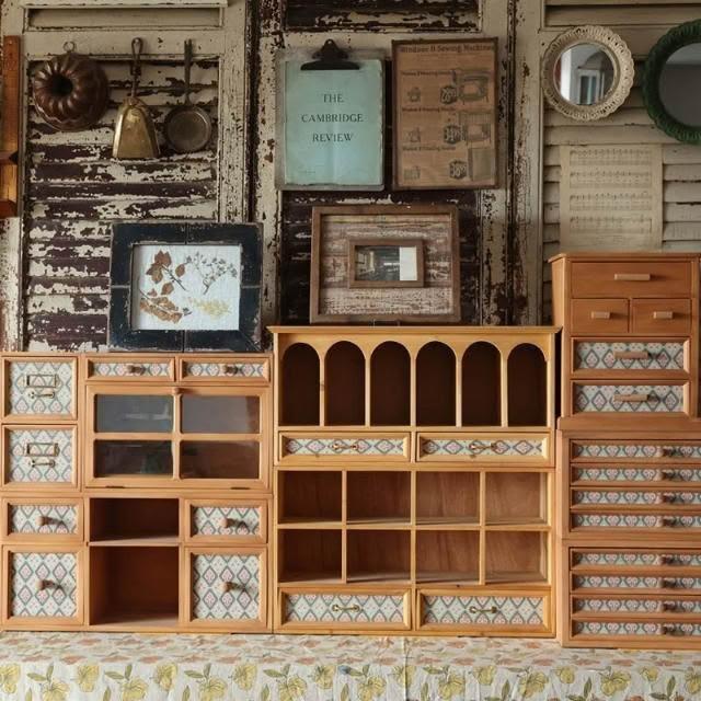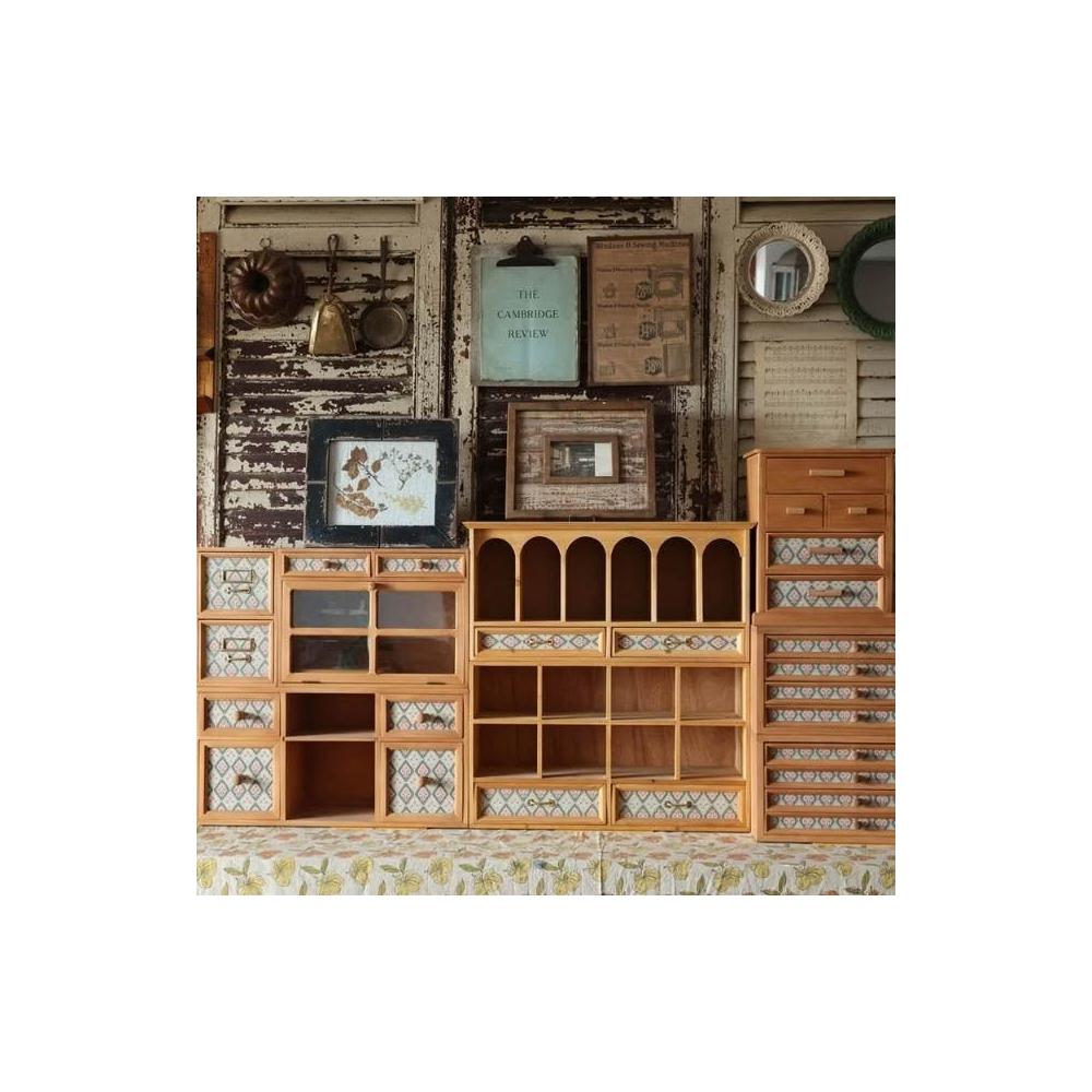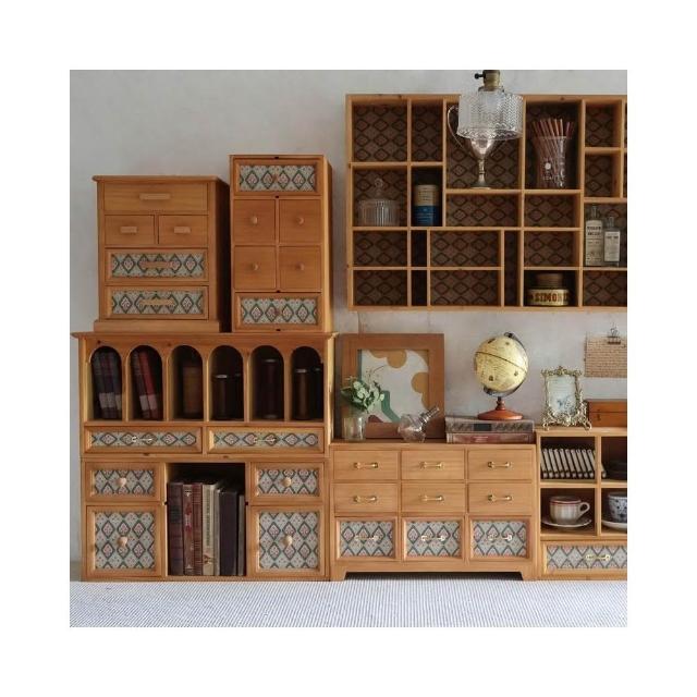 復古木製收納櫃 氛圍感書桌佈置桌面多抽屜印章收納盒 置物架