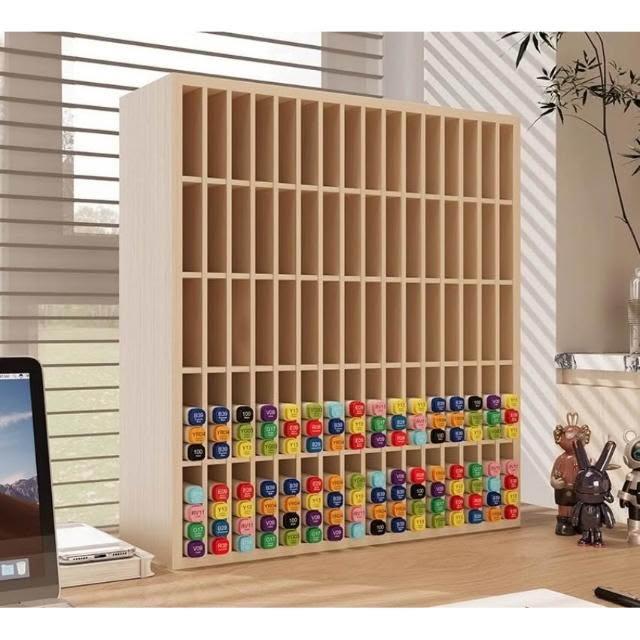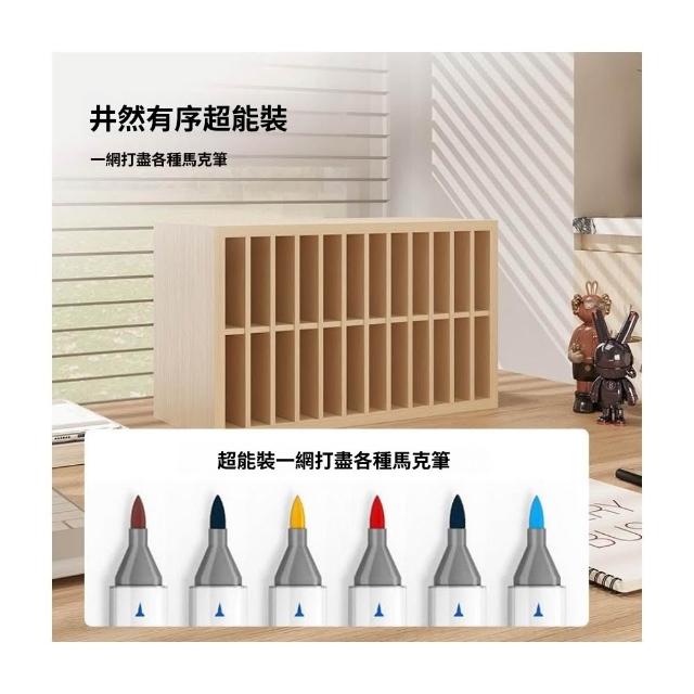 馬克筆收納盒實木收納架桌面兒童筆筒斜插式彩色筆展示架彩鉛筆架