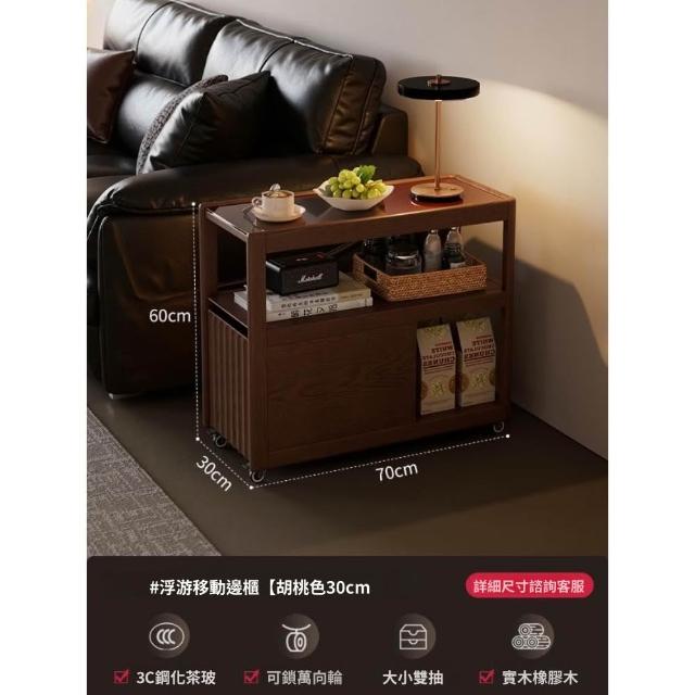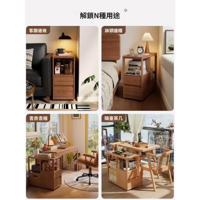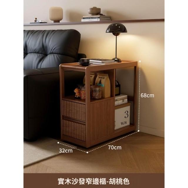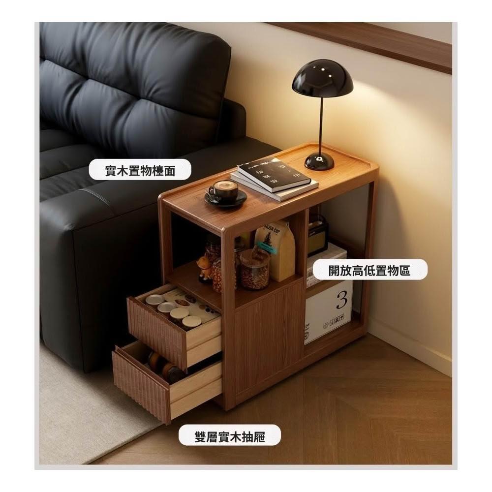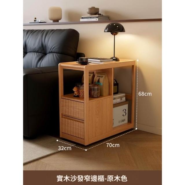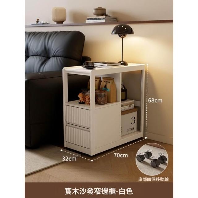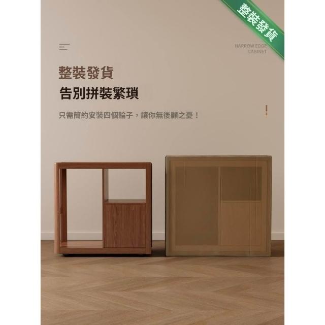 實木沙發側邊櫃 窄櫃 帶輪茶几收納置物櫃 客廳可移動沙發邊幾櫃