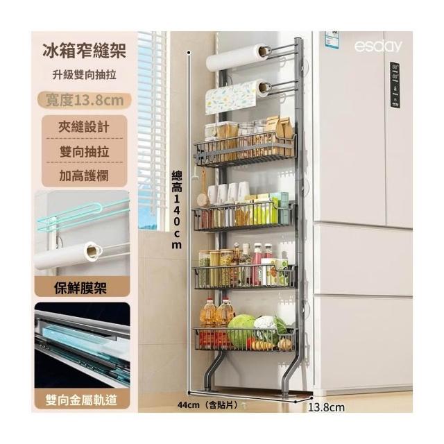 冰箱側收納置物架免打孔夾縫靠牆架子多層窄邊廚房調味料品收納