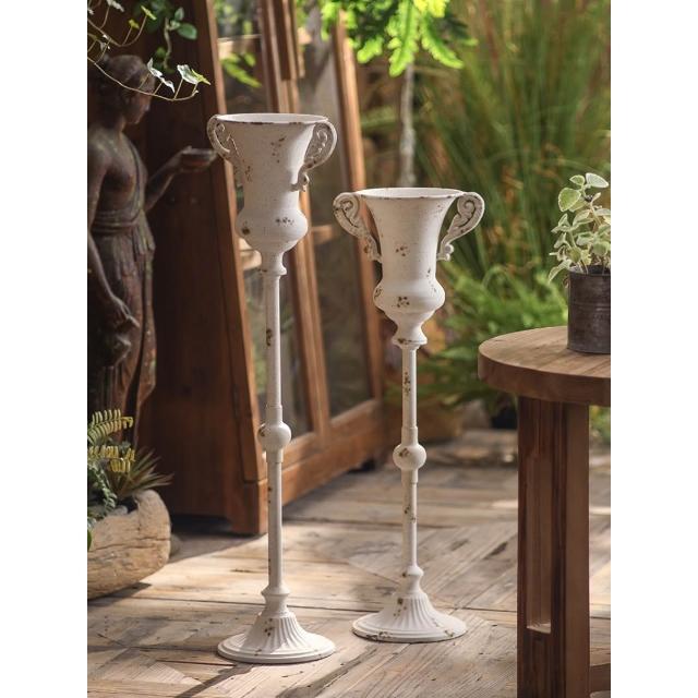 法式復古高腳花瓶擺飾客廳插花設計感小眾白藝術裝飾品陽台花盆