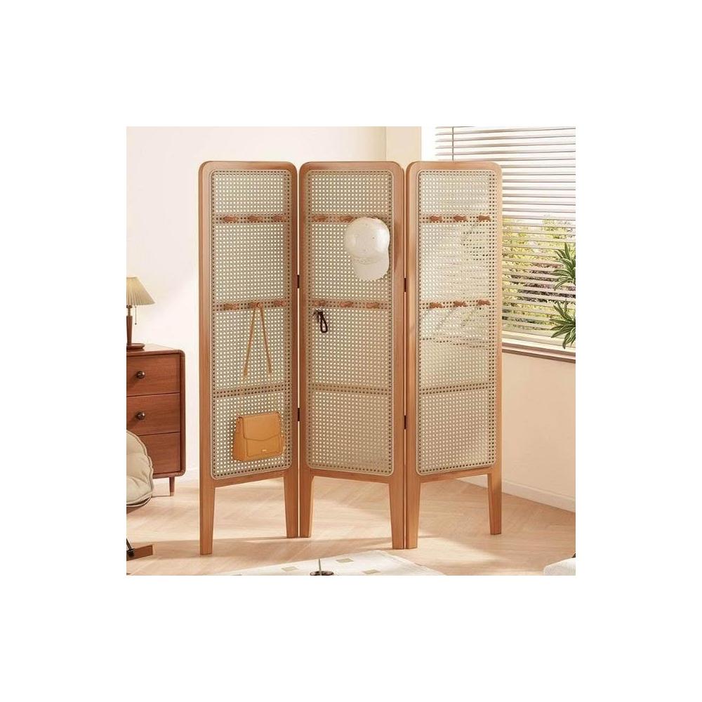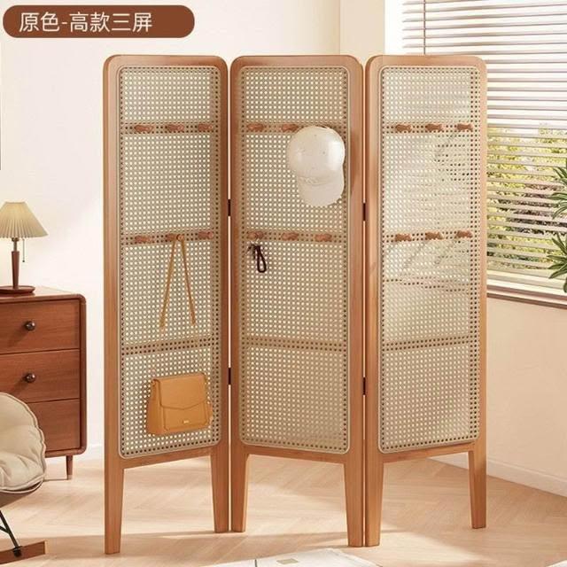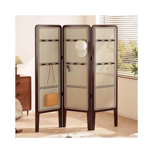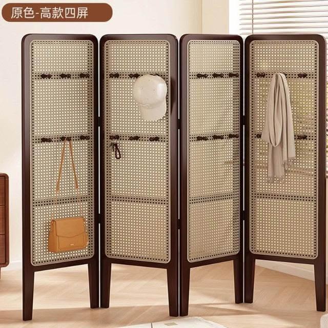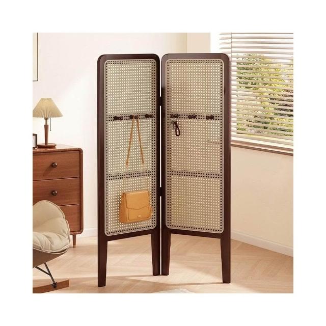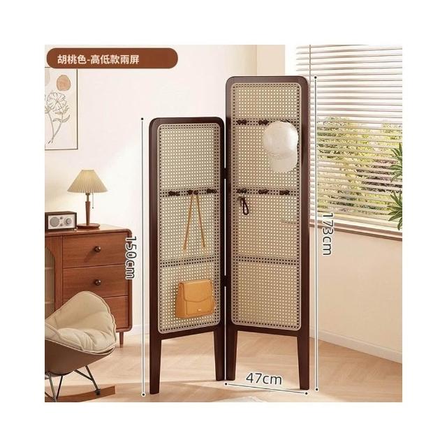 摺疊矮屏風 隔斷客廳可移動簡易遮擋風屏 中古風臥室裝飾藤編背景牆
