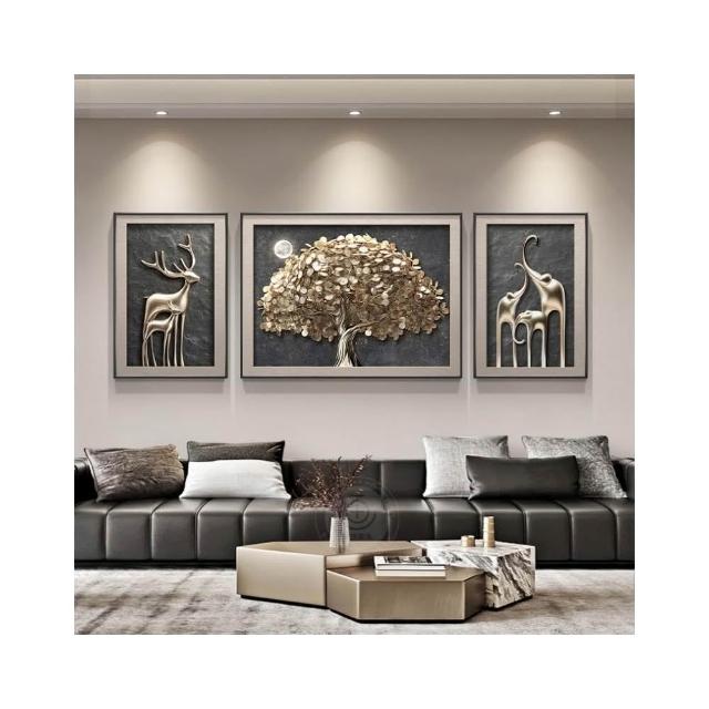 發財樹大氣客廳裝飾畫 現代輕奢大象沙發背景牆掛畫高級感三聯壁畫