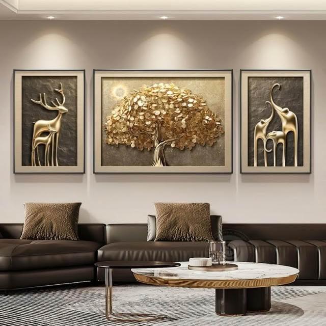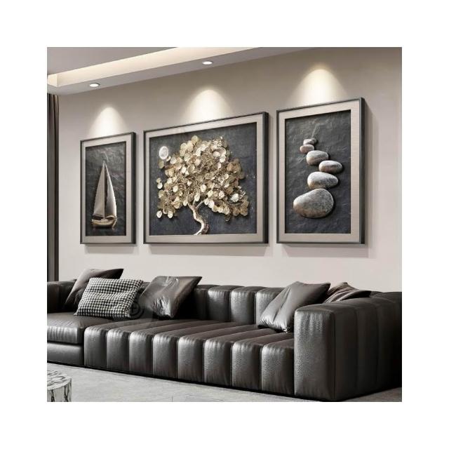發財樹大氣客廳裝飾畫 現代輕奢大象沙發背景牆掛畫高級感三聯壁畫