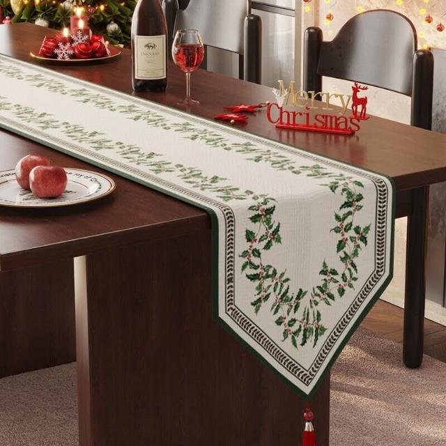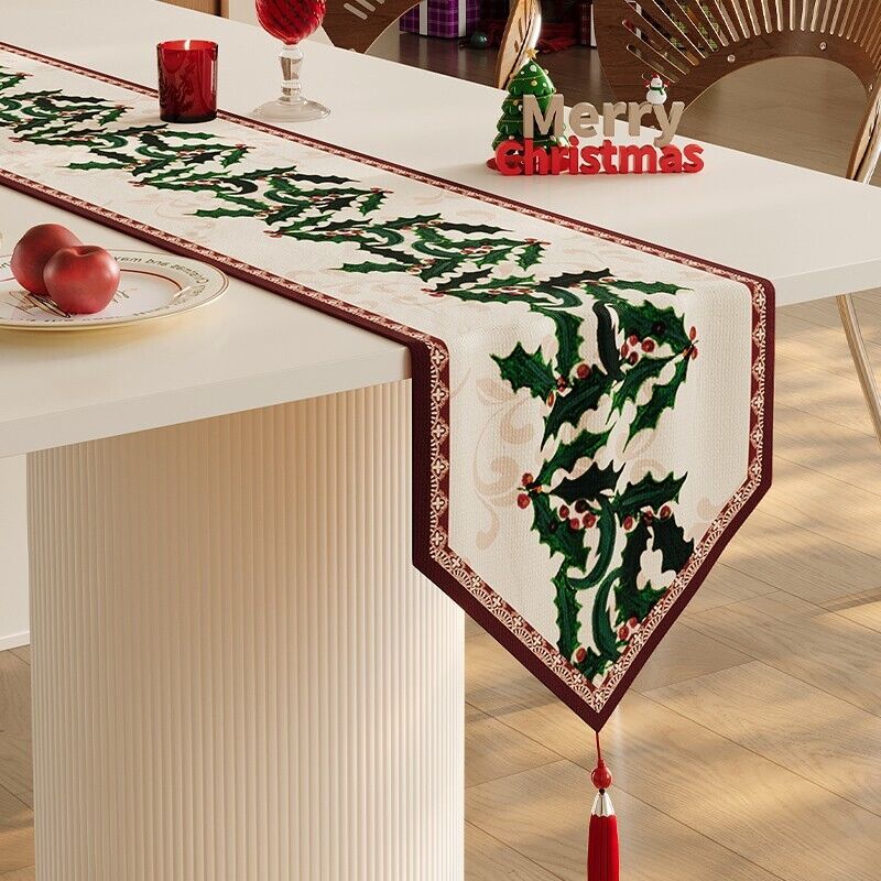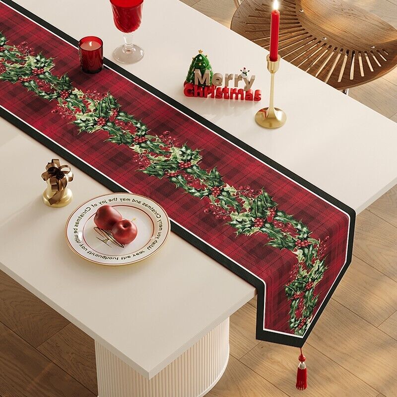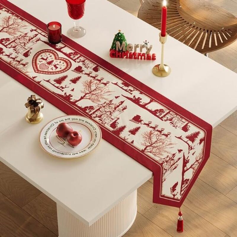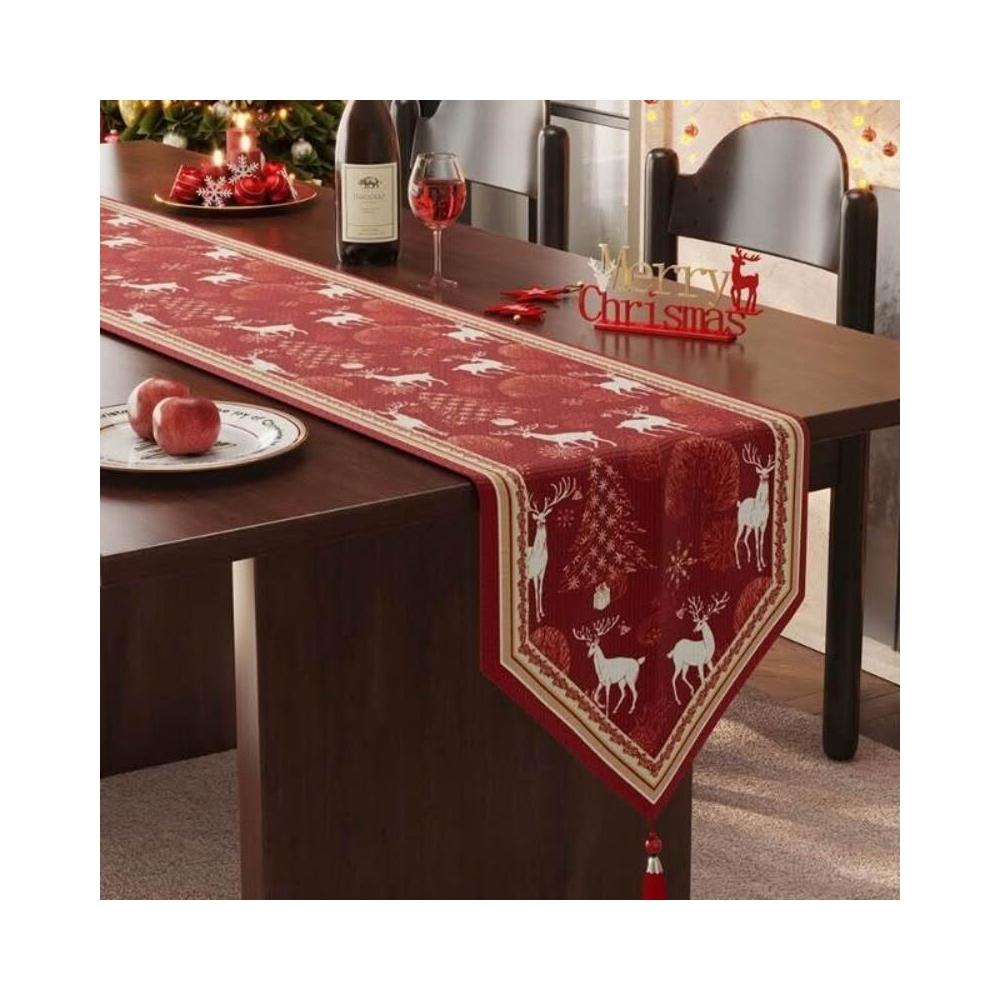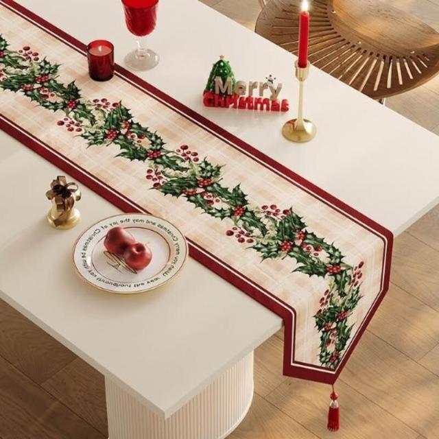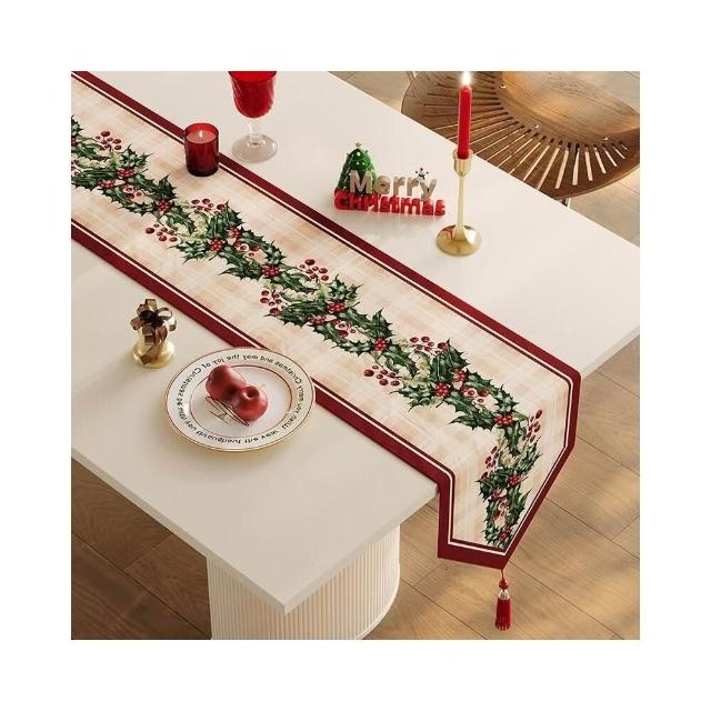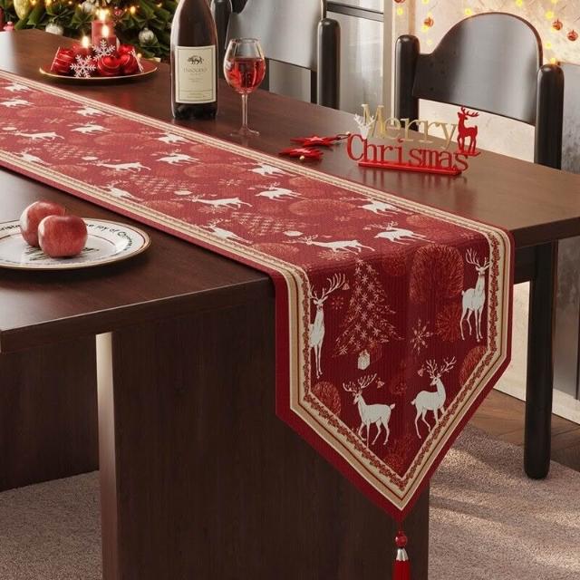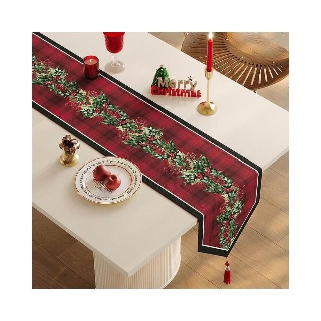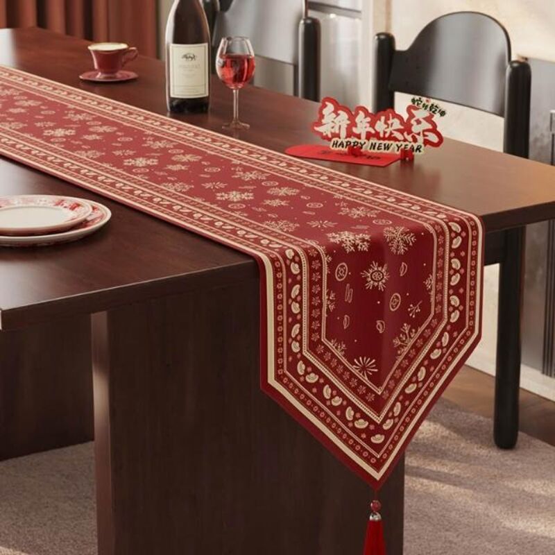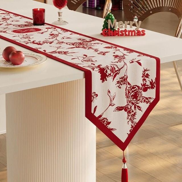 紅色聖誕桌旗布節日氛圍感新年長條餐桌布喜慶場景佈置茶几裝飾布