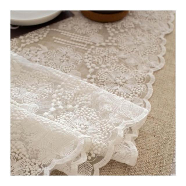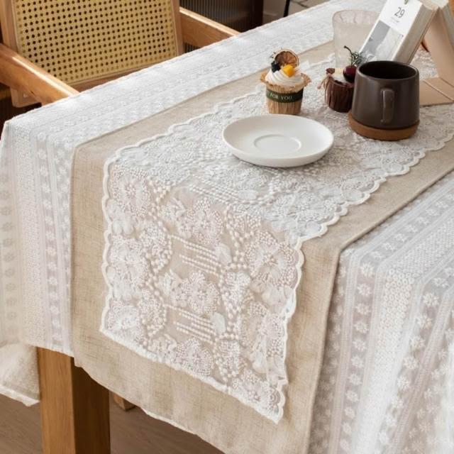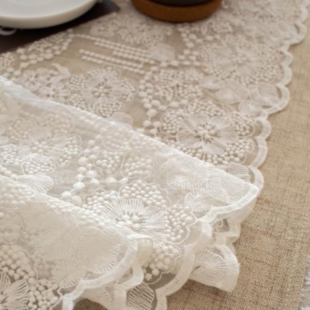 桌旗輕奢白色蕾絲刺繡法式氛圍感電視櫃長條餐桌墊訂製
