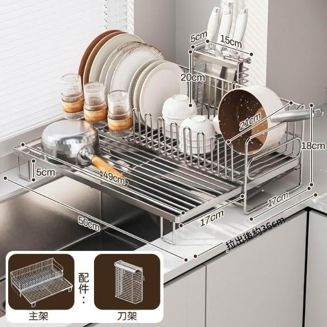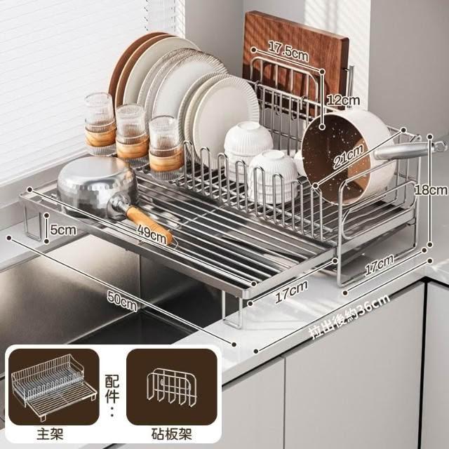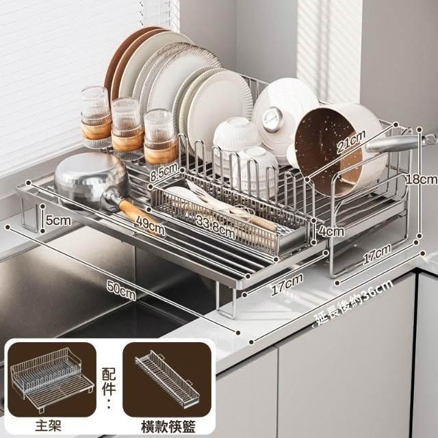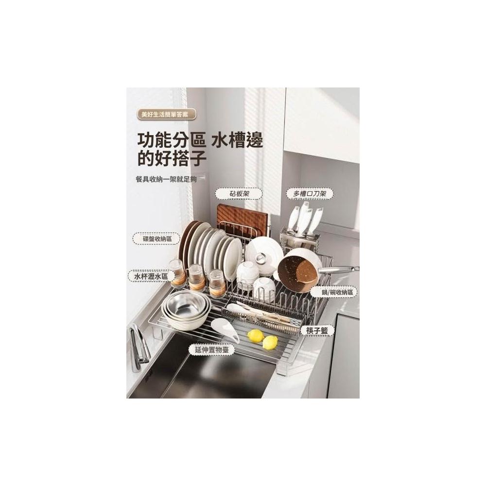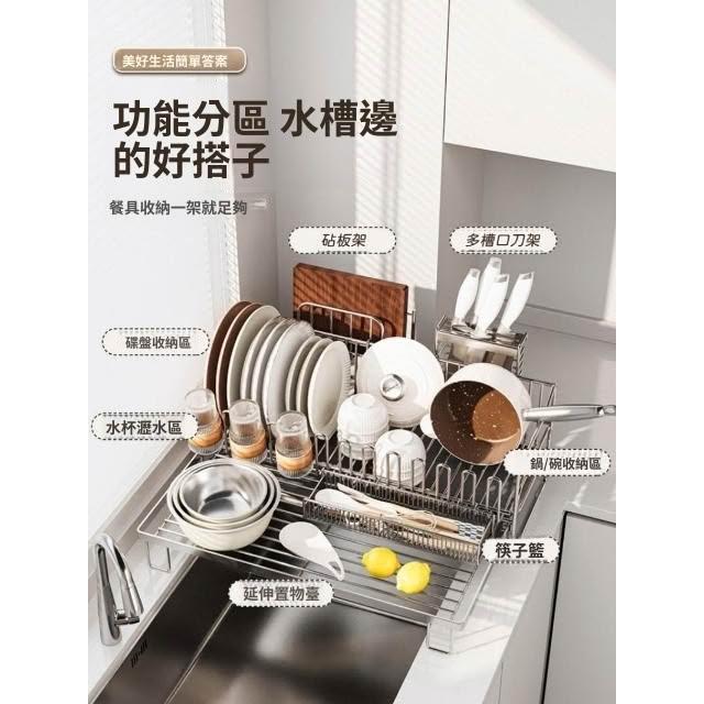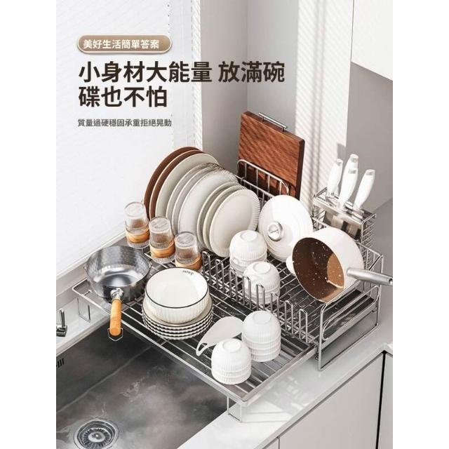 可伸縮304不鏽鋼碗碟瀝水架 廚房碗筷盤子收納架 多功能檯面瀝水籃