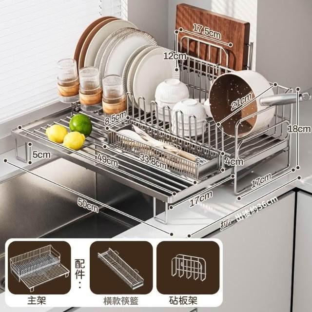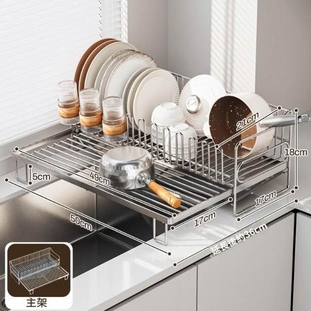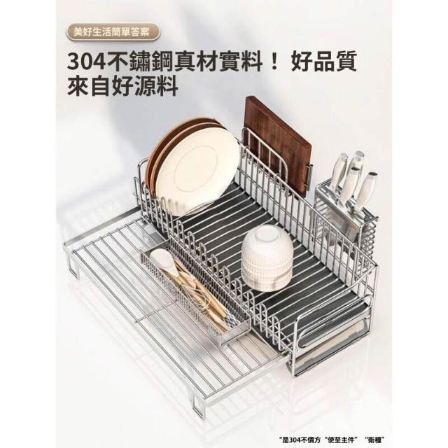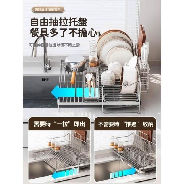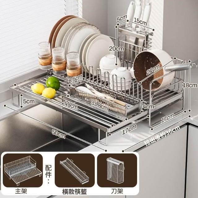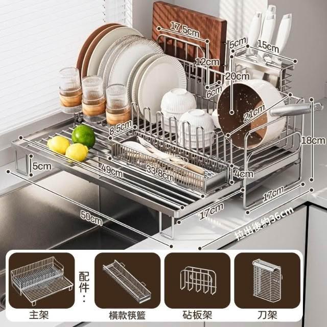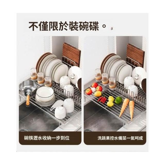 可伸縮304不鏽鋼碗碟瀝水架 廚房碗筷盤子收納架 多功能檯面瀝水籃