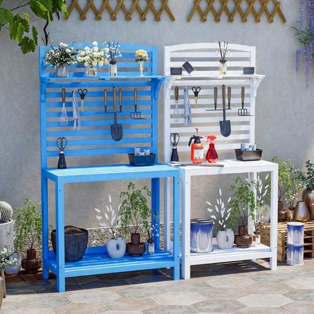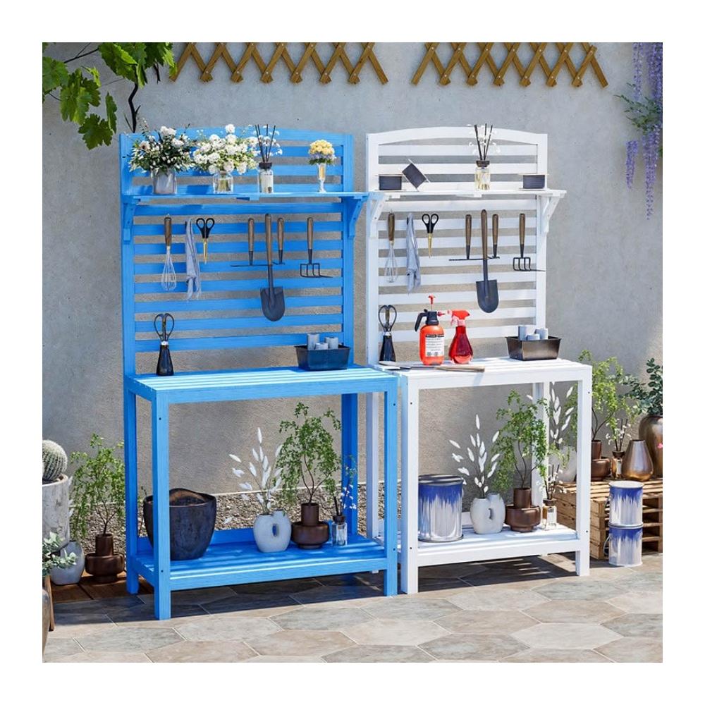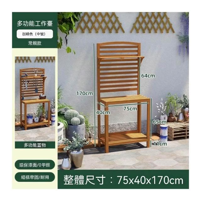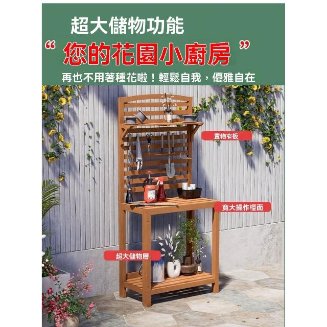 戶外防腐木工作台 花園庭院操作台 花架 多功能園藝工具收納置物桌