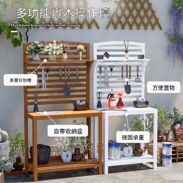 戶外防腐木工作台 花園庭院操作台 花架 多功能園藝工具收納置物桌