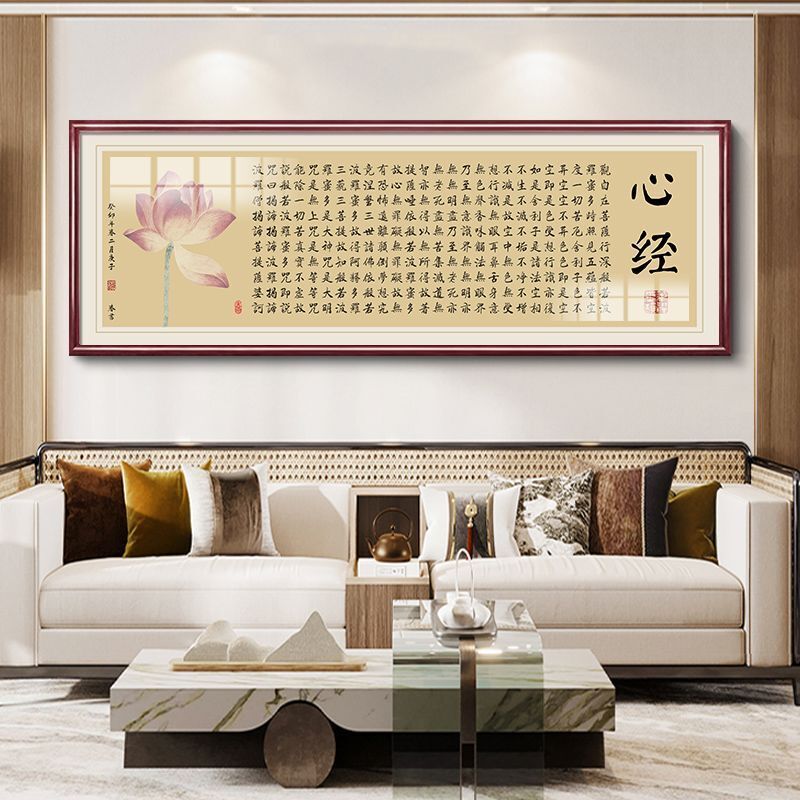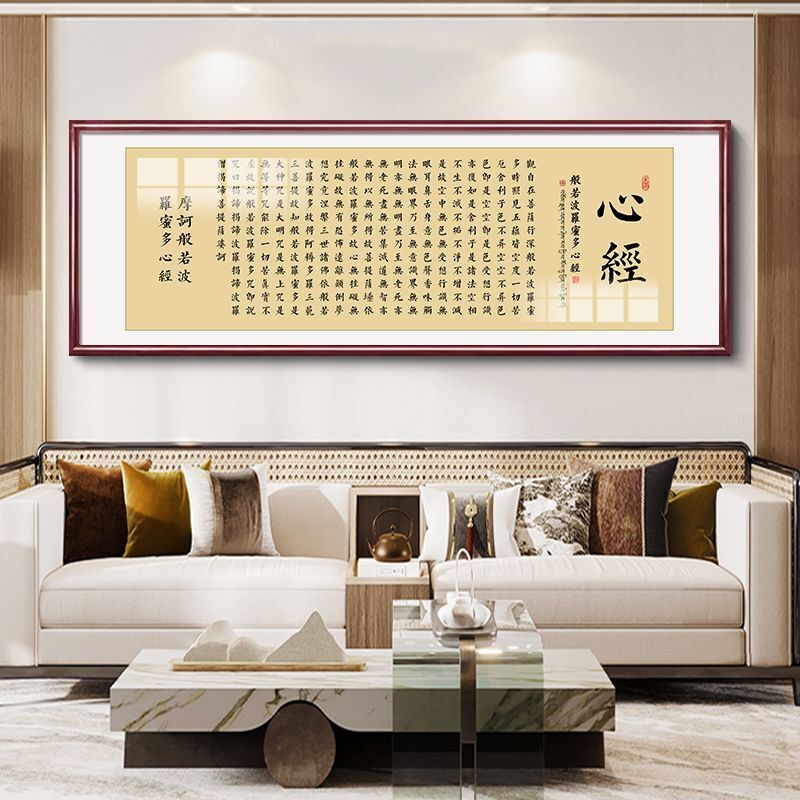 新中式心經掛畫 玄關佛臺壁畫 茶室禅意佛系客廳裝飾畫 佛經書法字畫 掛畫