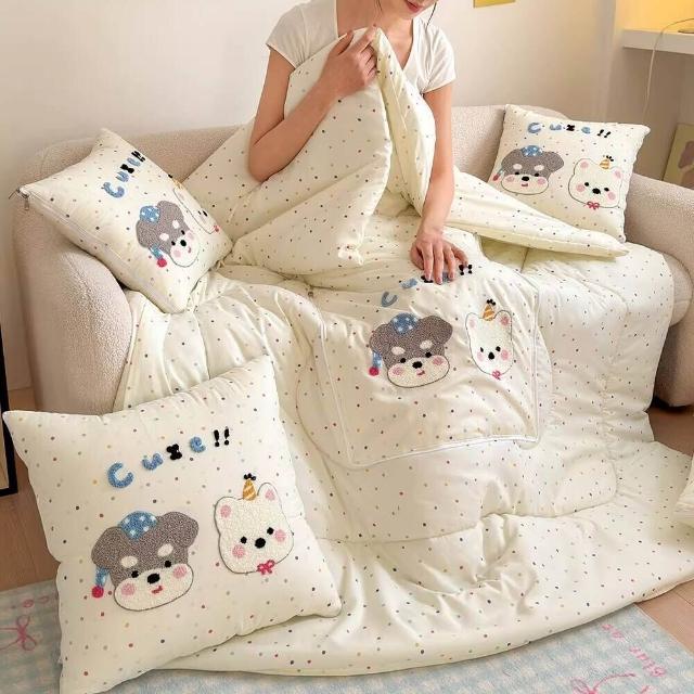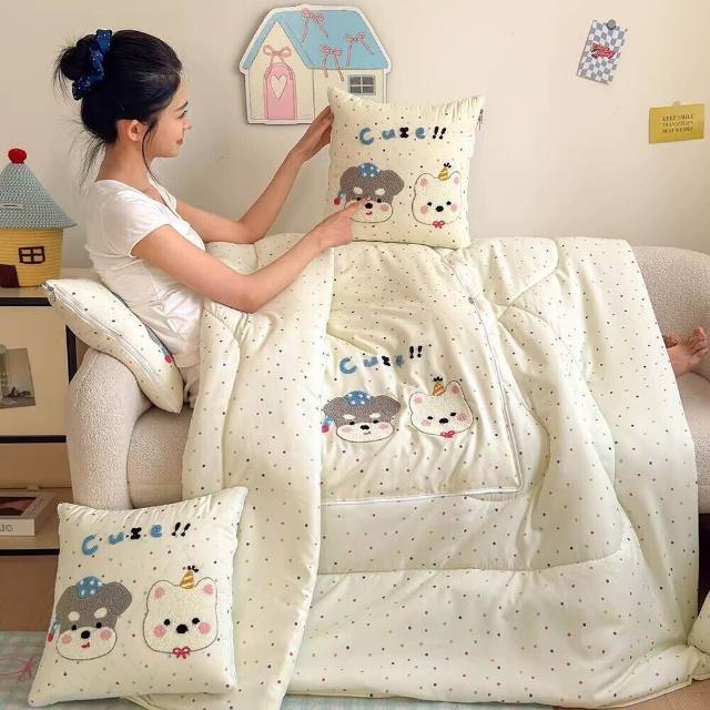 雙層紗抱枕被子 兩用辦公室午睡毯子 二合一汽車載折疊靠枕頭 空調被