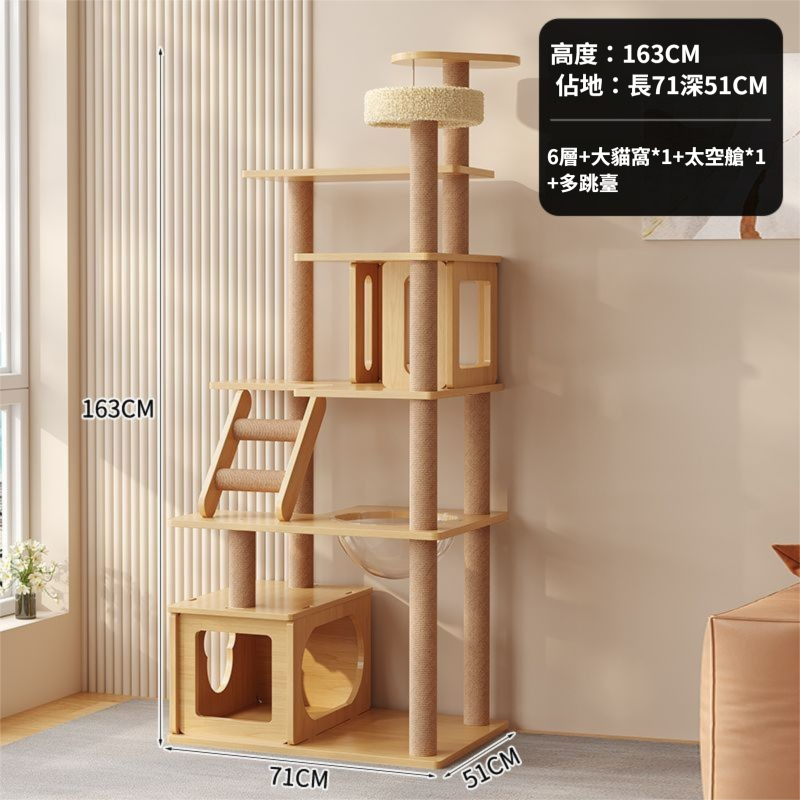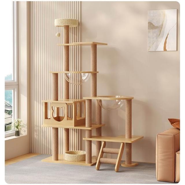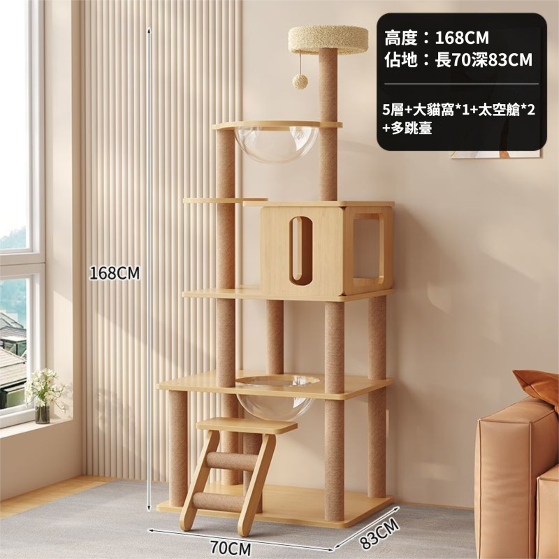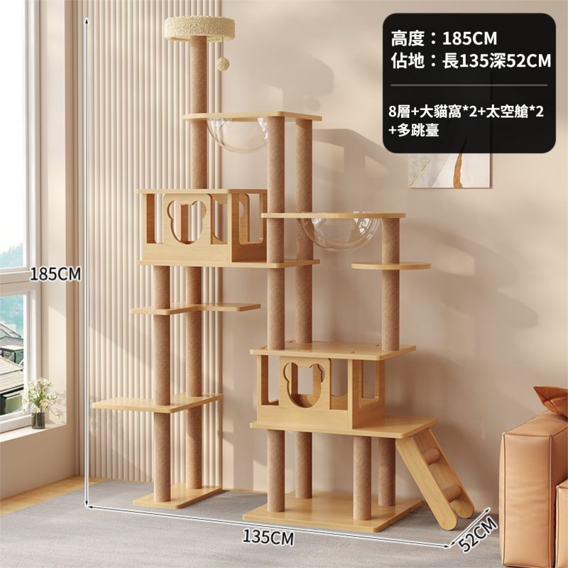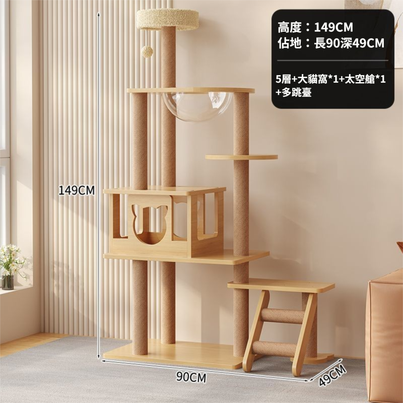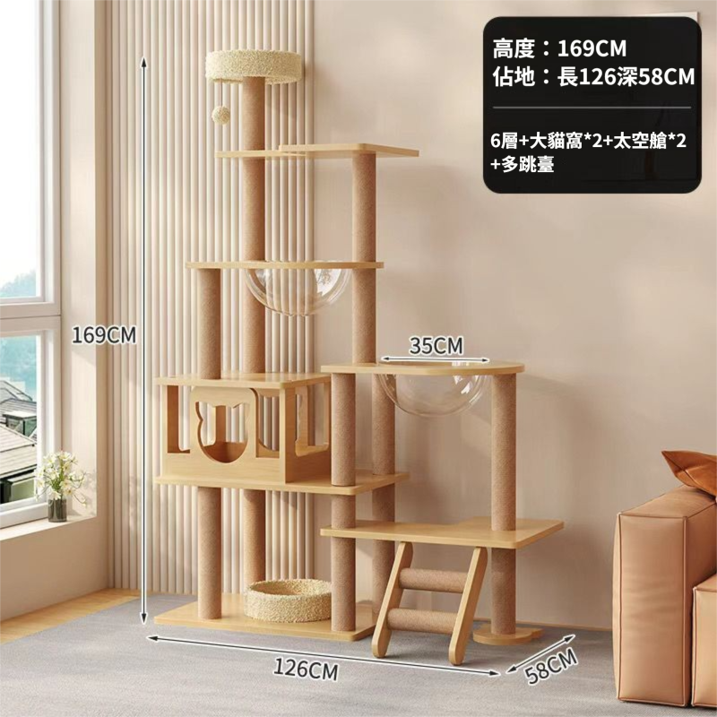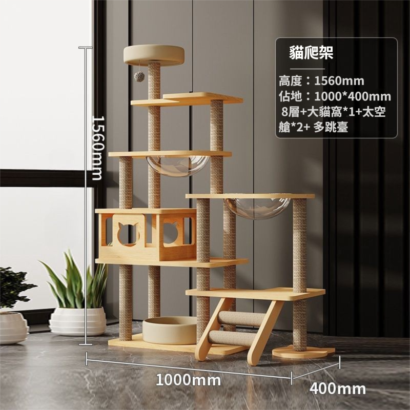 實木貓爬架 超大號耐磨貓窩一體式設計 大型落地式貓跳台 多層貓架子 太空艙