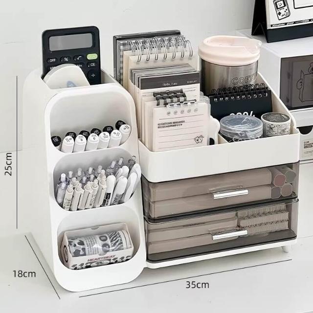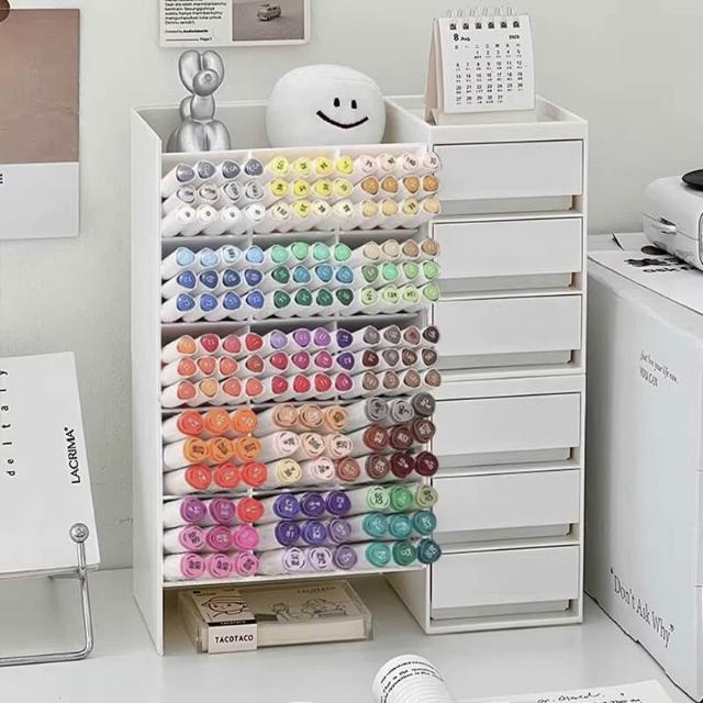 馬克筆收納盒 斜插式筆筒 辦公室桌面抽屜式筆盒 學生文具創意筆架子