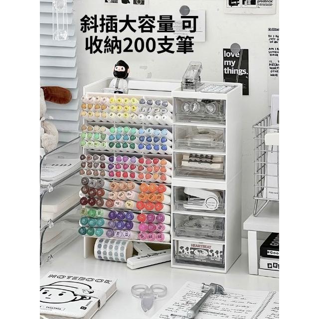 馬克筆收納盒 斜插式筆筒 辦公室桌面抽屜式筆盒 學生文具創意筆架子