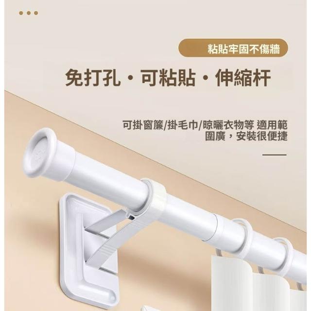 羅馬桿 免打孔安裝窗簾桿 粘貼式衣櫃活動板房晾衣架 墻上固定可伸縮桿子