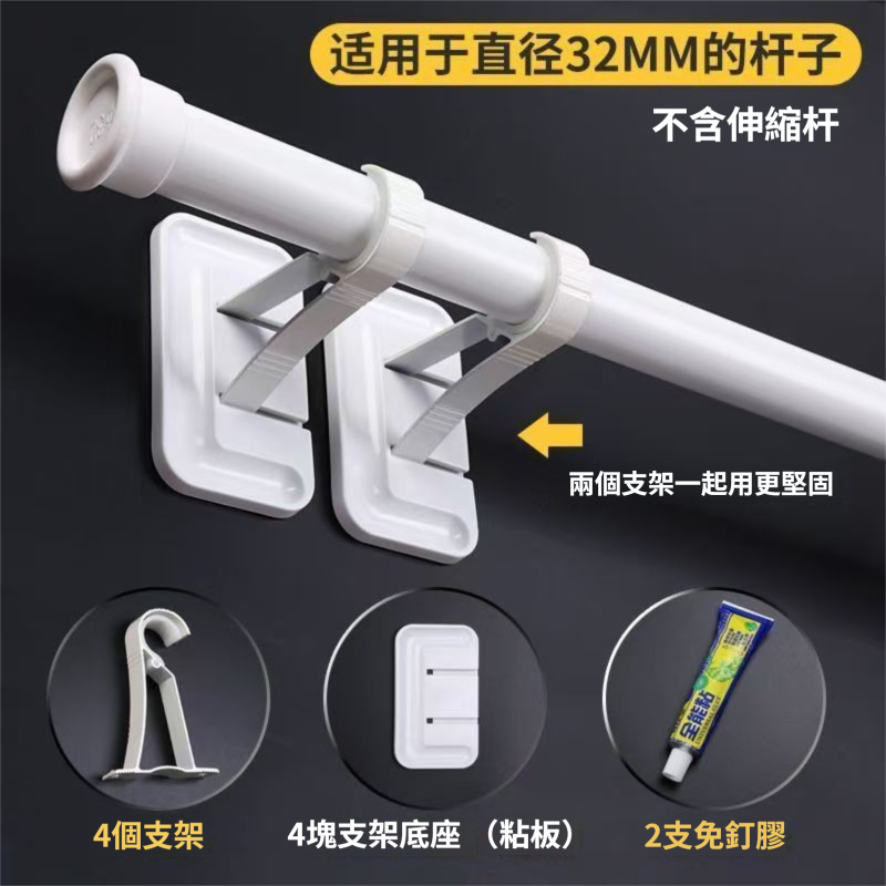 羅馬桿 免打孔安裝窗簾桿 粘貼式衣櫃活動板房晾衣架 墻上固定可伸縮桿子