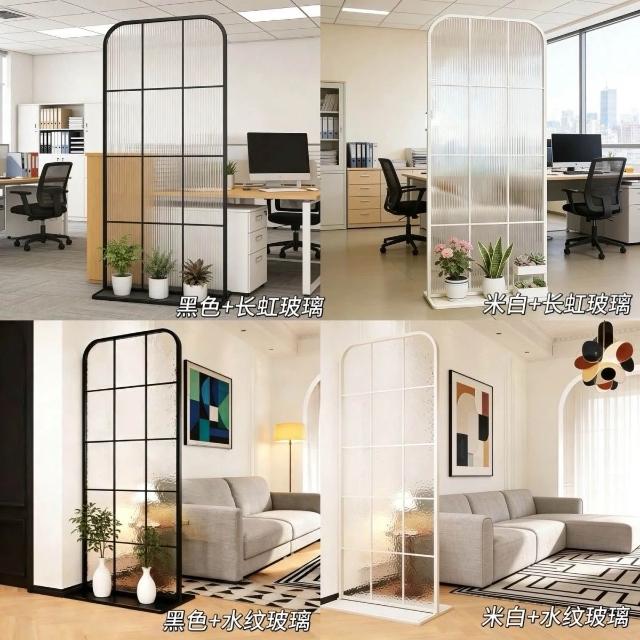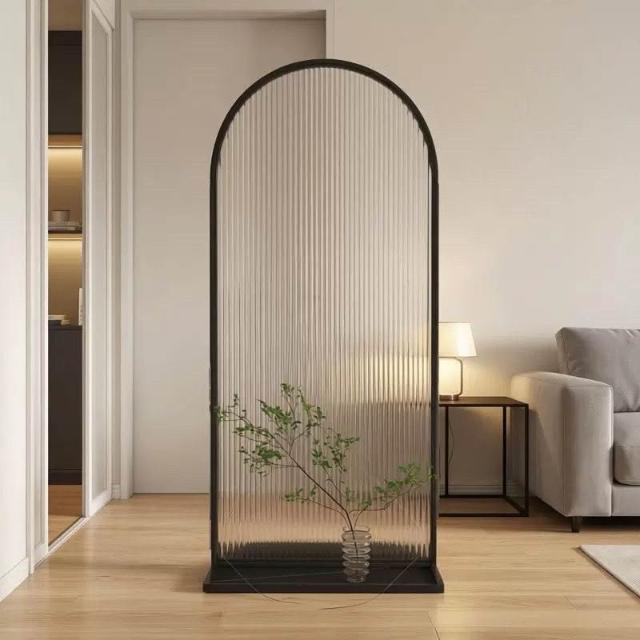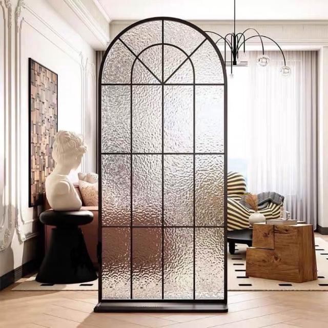 免打孔可移動屏風 法式拱形長虹屏風 玄關正對門玻璃入戶水波紋屏風 客廳隔斷