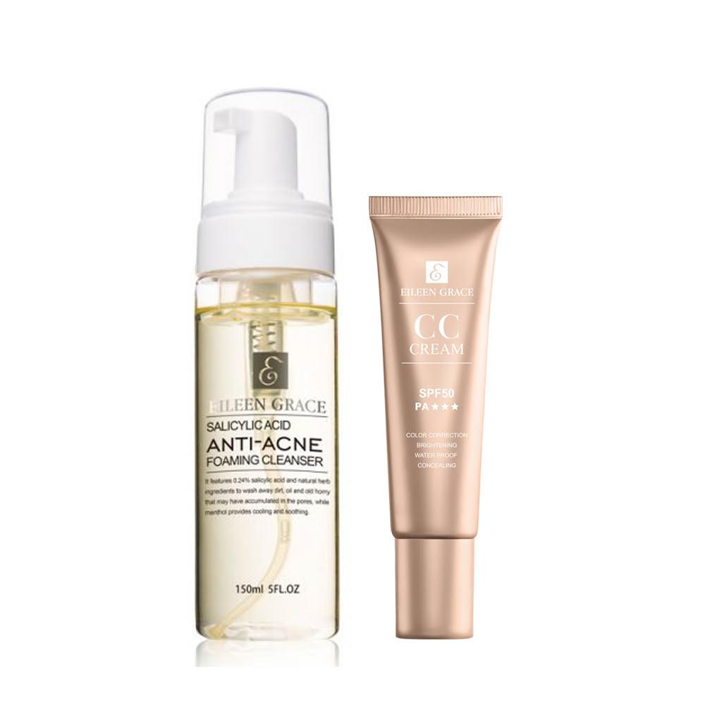 EILEEN GRACE 妍霓絲妍霓絲晶靈光感CC霜30MLX1水楊酸淨痘洗顏慕絲150ml X1贈旅髮油5MLX2