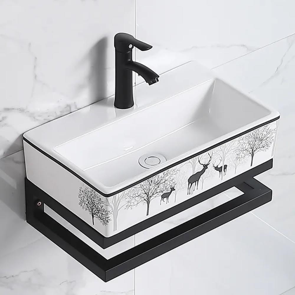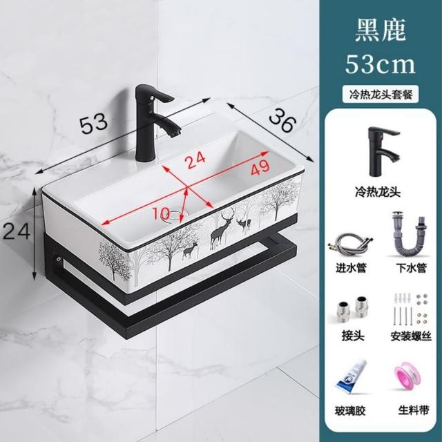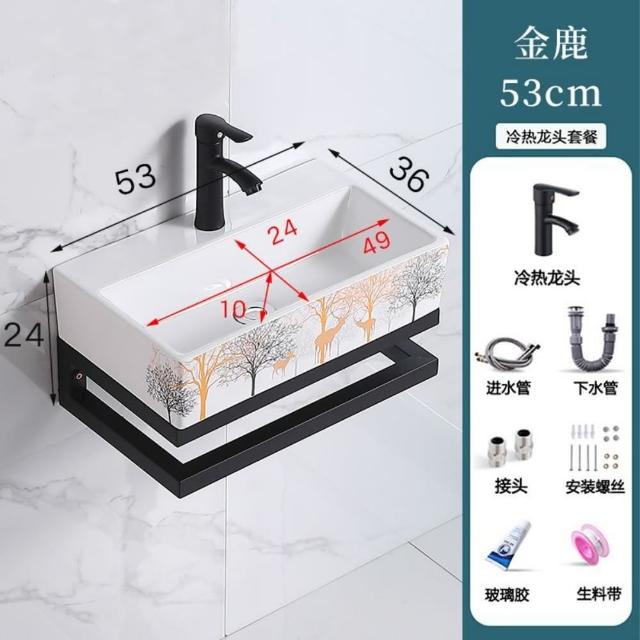 衛生間洗手盆不銹鋼支架小戶型掛墻式廁所洗臉盆陶瓷印花洗漱台臉盆