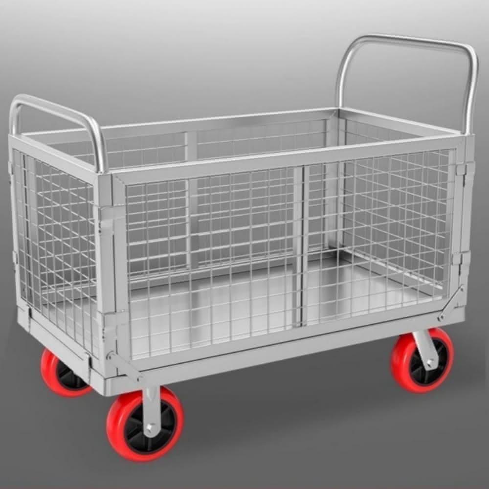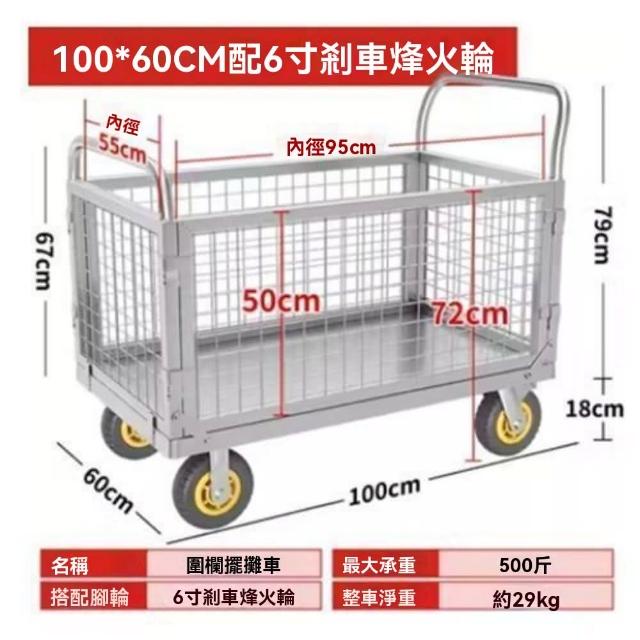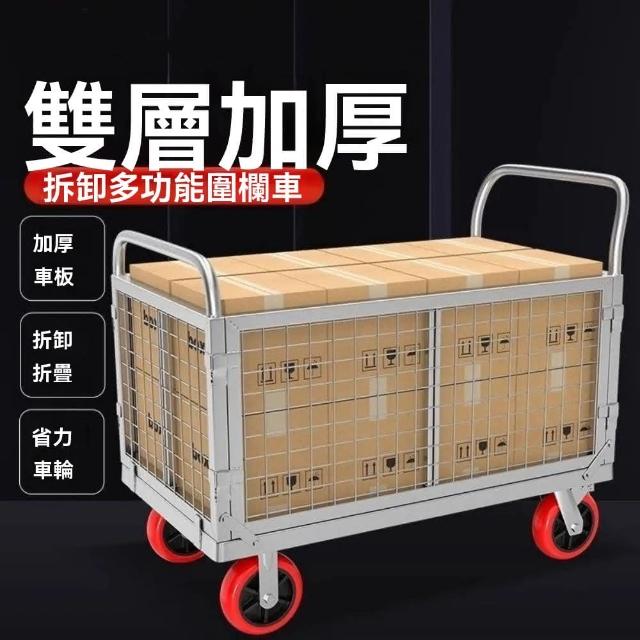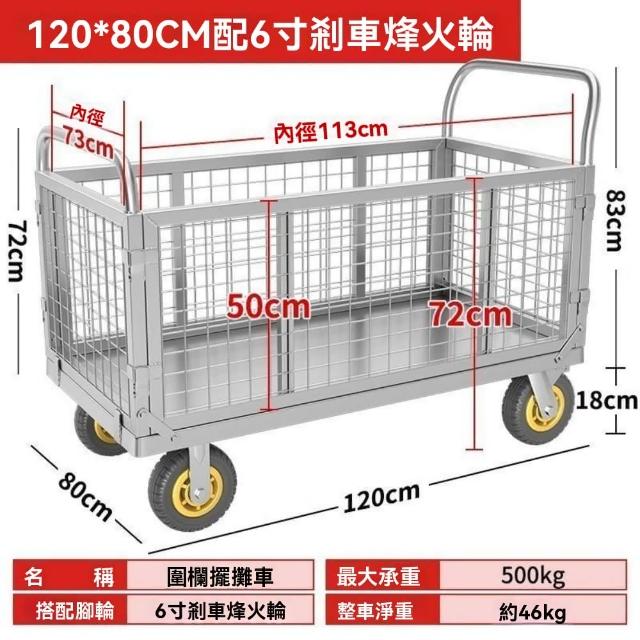 手推車帶圍欄平板車擺攤萬能小推車便攜可折疊靜音四輪小拉車