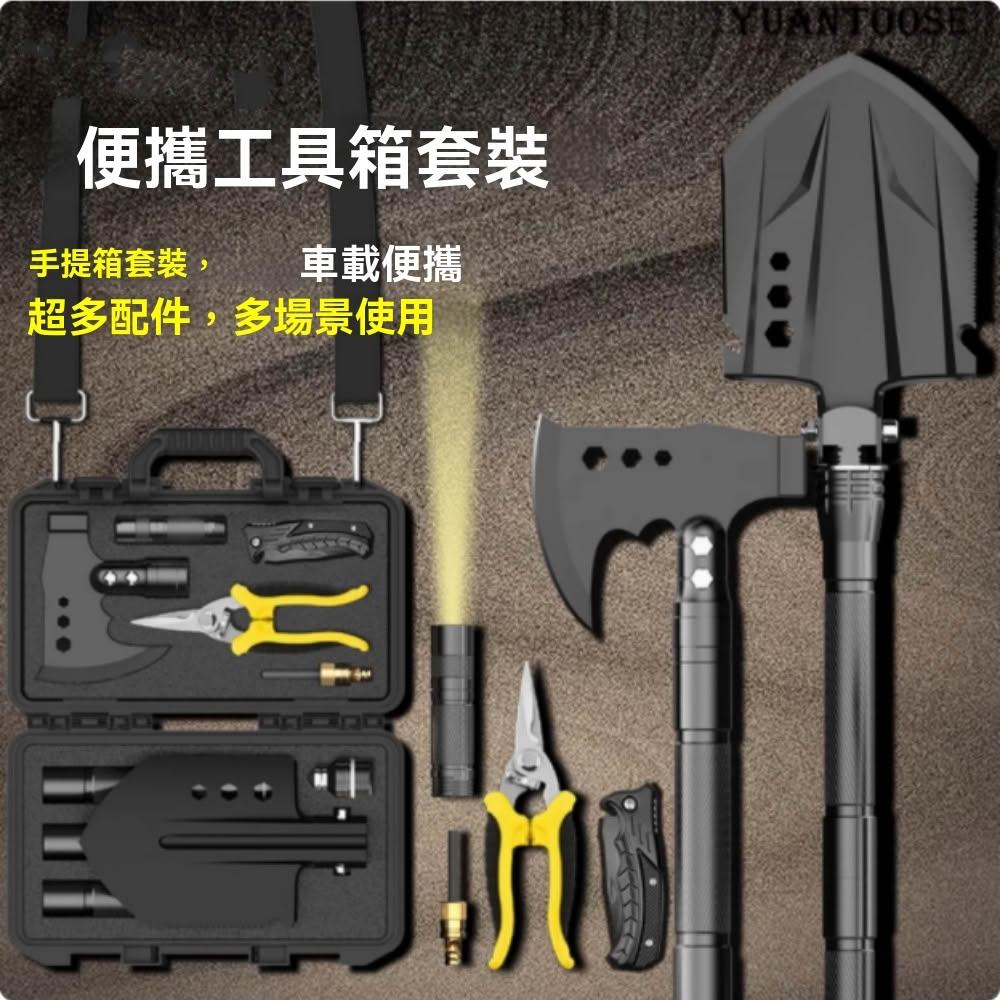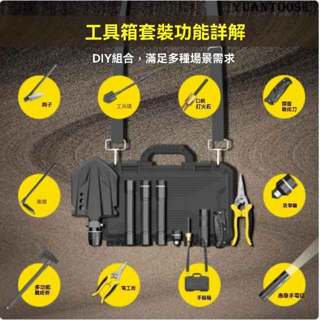 戶外露營多功能工兵鏟 戰術斧 戰術刀 鋤頭 手電筒 電工鉗收納箱