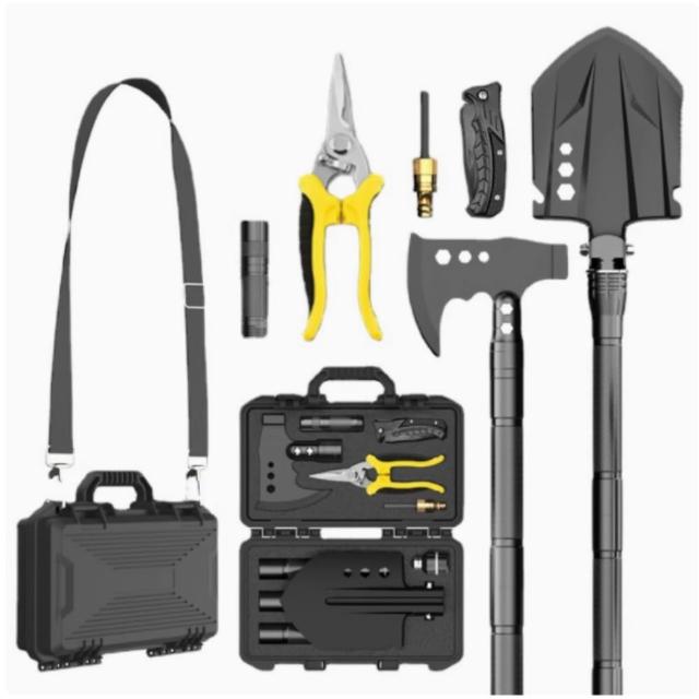 戶外露營多功能工兵鏟 戰術斧 戰術刀 鋤頭 手電筒 電工鉗收納箱