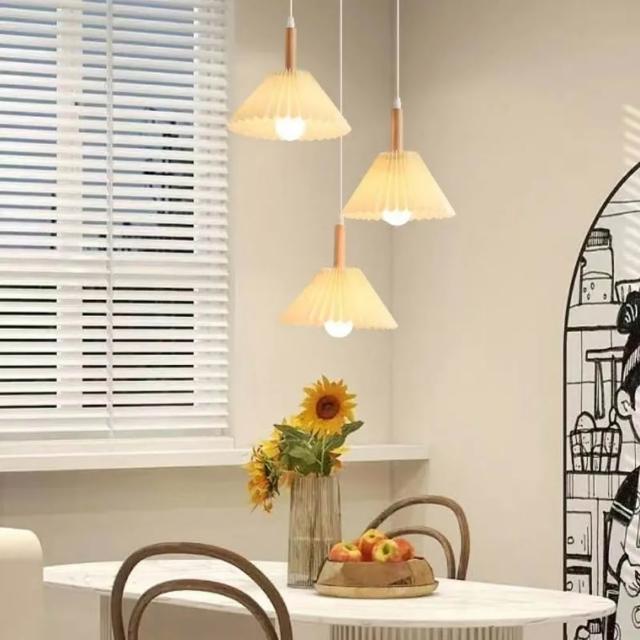 吊燈原木風餐廳吊燈百褶布藝燈具民宿極簡吊燈