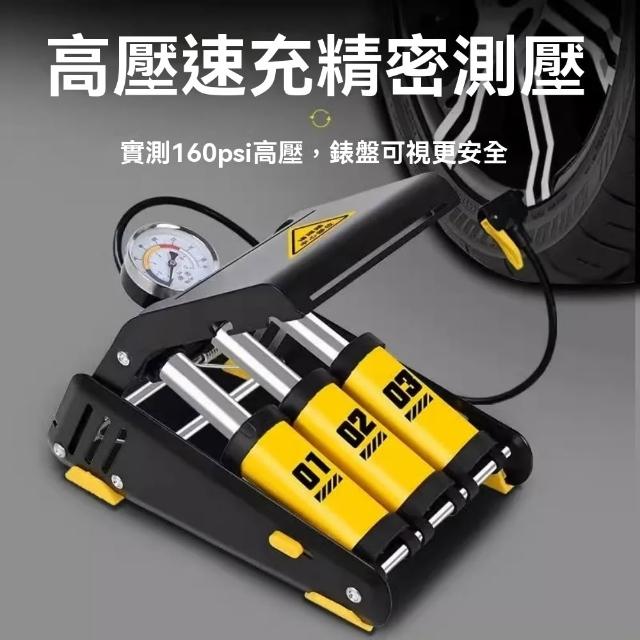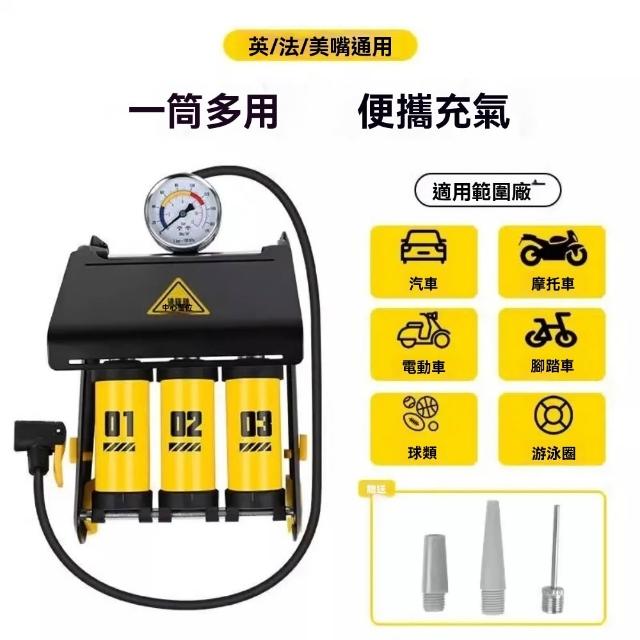 腳踏打氣筒高壓三缸升級高壓腳踩充氣泵電動車自行車摩托車打氣筒