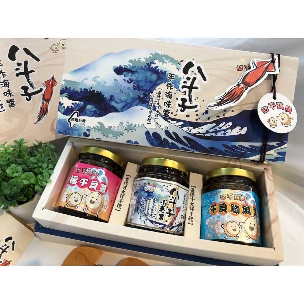 心干寶貝-海洋禮盒(幸福干貝醬+八斗子小卷醬+干貝吻魚醬 )170g