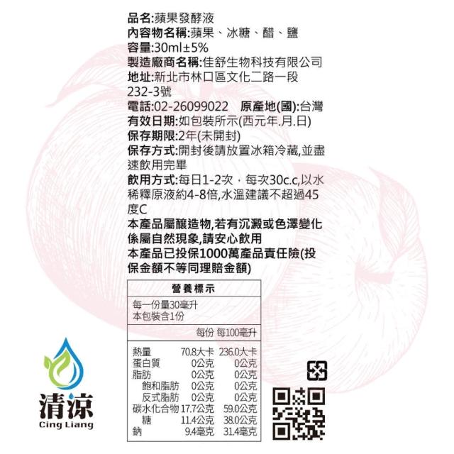 清涼蘋果酵素(發酵液) 10入組/富士蘋果 多酚精華/調整體質/隨身包-清涼酵素
