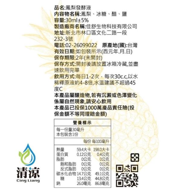 清涼鳳梨酵素(發酵液) 10入組/金鑽鳳梨 鳳梨酵素/隨身包-清涼酵素