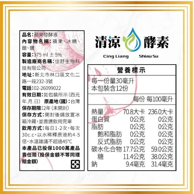 清涼蘋果酵素(發酵液) 375 ml/富士蘋果 多酚精華/調整體質/植化素產品-清涼酵素