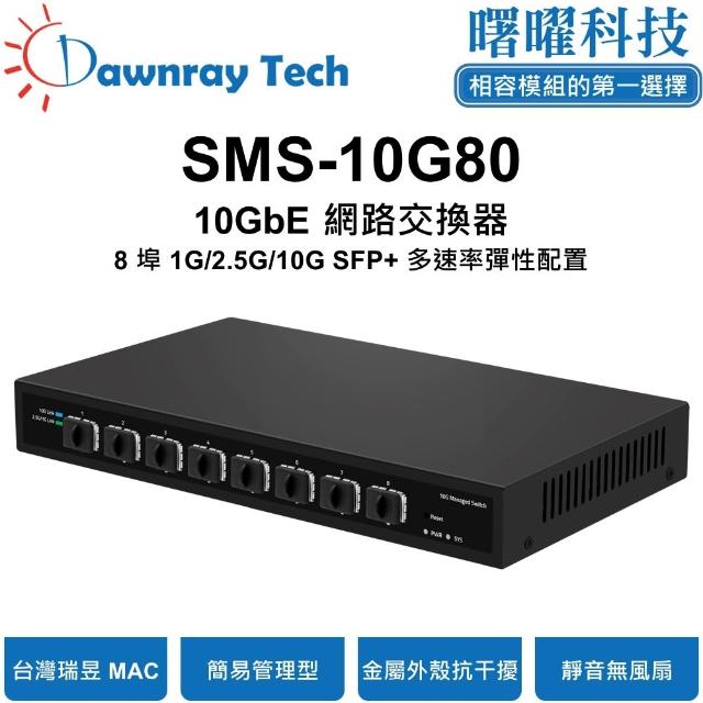 DawnraySMS-10G80 簡易網管乙太網路交換器 8 埠 1G/2.5G/10G SFP+ 金屬外殼