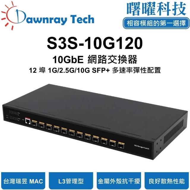 DawnrayS3S-10G120 L3 網管乙太網路交換器 12 埠 1G/10G SFP+ 金屬外殼 風扇散熱