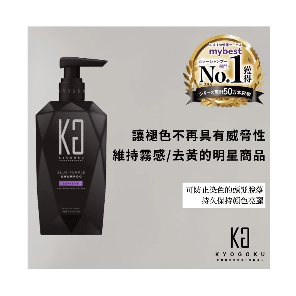 KYOGOKU日本卡雅仕 矯色彩色洗髮精200ml-藍紫色(濃度提升版/進階去黃/漂染髮/護色)