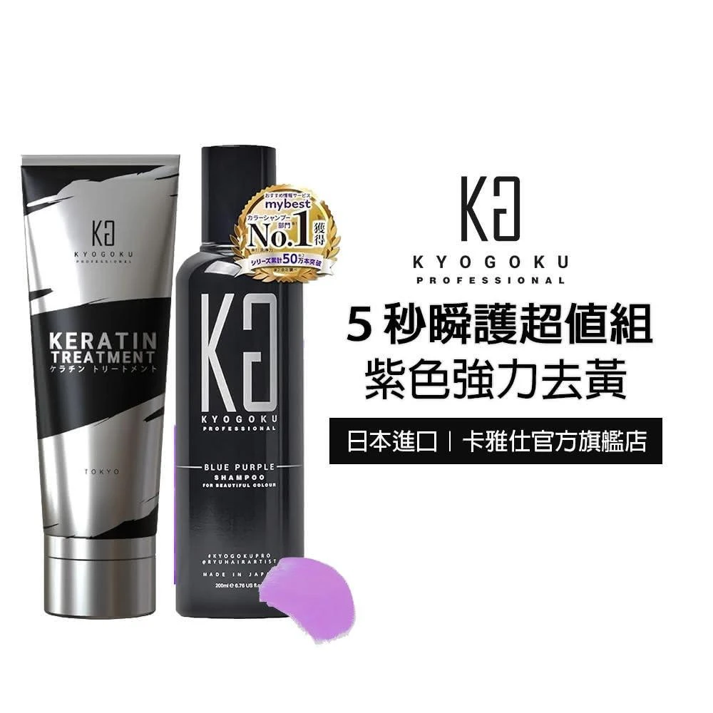 KYOGOKU日本卡雅仕 5秒瞬護超值組-彩色洗髮精-藍紫色+角蛋白護髮素(矯色/補色/護色/漂染髮/髮膜)